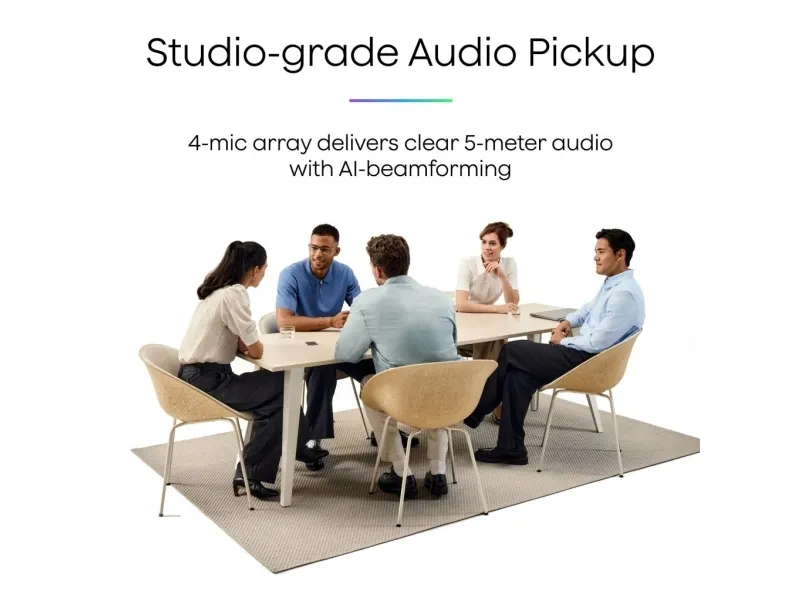 Long-Range, 4-Mic Pickup: AI beamforming keeps voices clear up to 5 m