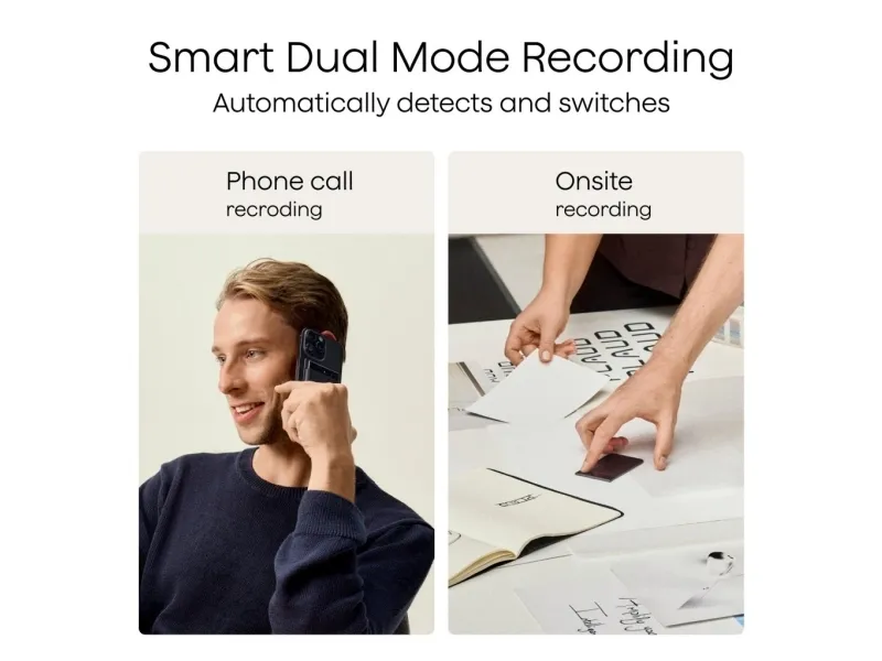 Smart Dual-Mode Recording: Automatically switches between call and meeting capture