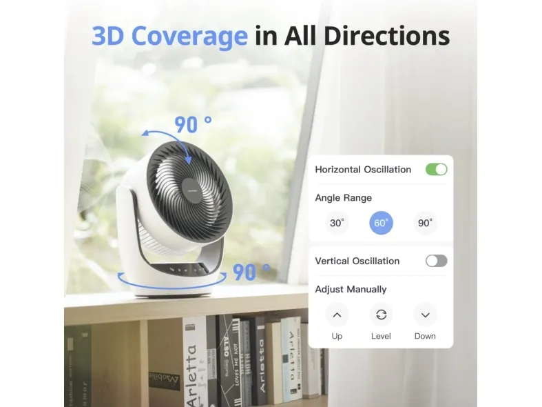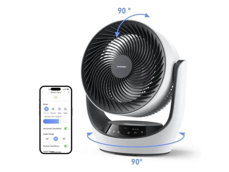 Temperature and Humidity Automation Integrates with SwitchBot Hub 2 to automate air circulation based on room temperature and humidity, ensuring improved airflow and comfort. Summer Cooling Activates air conditioner and fan when room temperature rises, effectively distributing cool air during hot summer days. Dry Season Comfort Works with SwitchBot Humidifier to add moisture to dry air during fall, with the fan evenly distributing it for enhanced comfort and prevention of dryness. Winter Warmth Enhances heater efficiency by circulating warm air generated, ensuring even distribution throughout the room for a cozy atmosphere in winter. Dampness Prevention Aids ventilation and dehumidifiers during rainy seasons, accelerating drying processes, facilitating quicker laundry drying, and reducing room dampness.
