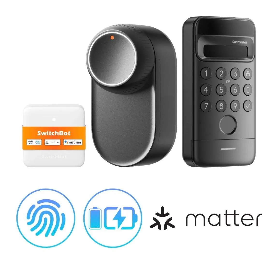 Facial Recognition Unlock Unlocks automatically as you approach, no keys or fingerprints needed. Works seamlessly even when your hands are full, wet from the rain, or in low-light conditions. Recognition range 0.6 to 0.9 meters, Height coverage: 1.2 to 2 meters Secure Local Facial Recognition Powered by financial grade 3D structured light technology with a false recognition rate of less than 0.0001. All facial data is processed and stored locally never uploaded to the cloud for enhanced privacy and peace of mind. Triple Power Protection Enjoy up to 9 months of battery life with the main battery, backed by a backup battery, and an emergency supercapacitor. Works even in extreme cold down to minus 40°C. When charging the main battery, the backup seamlessly takes over. Even if both run out, you can still unlock the door using emergency microcurrent power. No more lockout worries. Sleek, Drill-Free Installation for Any Lock Sleek all-metal body, now 50 slimmer. Features magnetic quick release design and seamless base ring for gap free installation no drilling required, no damage to your existing lock. Includes 3 wood grain finish stickers to match different home styles. Optional accessory kit adapts to 99 of non-standard locks sold separately. Multiple Unlocking Methods In addition to the innovative facial recognition, the SwitchBot Lock Ultra Vision Combo also supports fingerprint, password, voice commands, Apple Watch, and remote unlocking via the app. This set includes the Matter-compatible Hub Mini, compatible with third-party platforms such as HomeKit, Alexa, and Google.