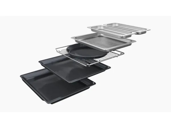 Discover the Siemens iQ700 HS736G1B2, an advanced oven designed to enhance your cooking experience. This built-in electric oven not only offers a generous 71 liters of capacity but also features a TFT display for easy control. With an Energy Class A+ rating, it ensures efficient use of power while offering a wide range of cooking programs, from 4D hot air to Sabbath mode, catering to all your culinary needs. The inclusion of a comprehensive set of cooking accessories, including enamel baking tray and pizza pan, allows for immediate exploration of diverse recipes. Safety is paramount, with child security and a triple glazed door among the advanced safety features. Additionally, its smart connectivity through Wi-Fi and compatibility with intelligent assistants like Alexa and Google Assistant brings convenience and innovation right into your kitchen. The Siemens iQ700 oven is not just an appliance; it's a tool designed to make cooking a pleasure and cleaning effortless with its self-cleaning technology.