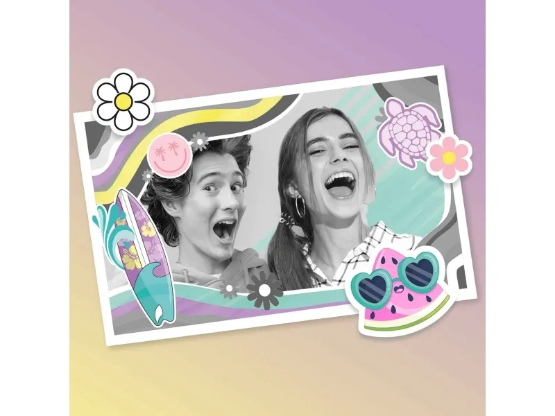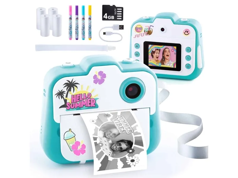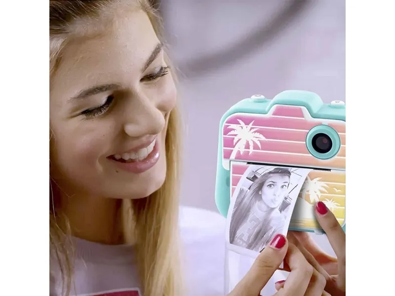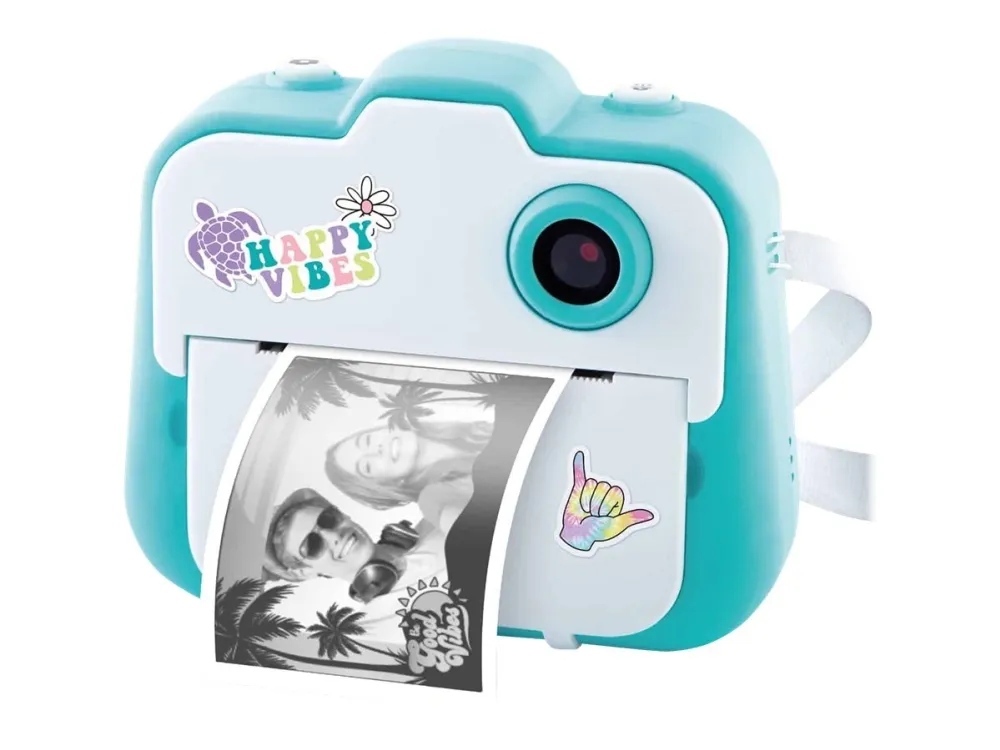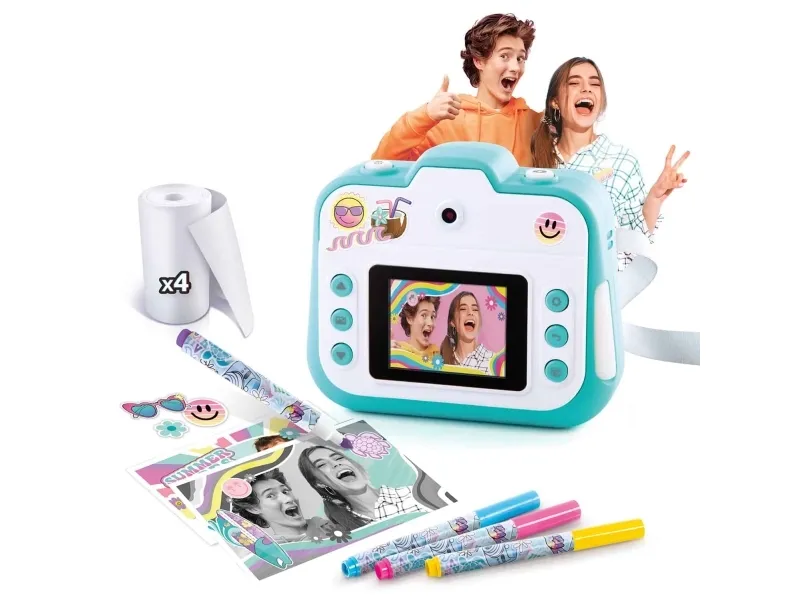 Create fun photo and video content, print and personalize 250+ instant prints and enjoy hours of fun with your friends with this stylish instant camera! The pocket-sized camera is packed with cool features like 20+ fun photo filters and effects, a shutter timer perfect for group selfies, video recording, a rechargeable built-in battery, plus a selfie lens for easy selfie-snaps! Comes with a 4GB microSD card, 4 paper rolls, USB charger cable also for downloading your photos/videos. Plus, customize your instant prints with 4 colorful marker pens and fun stickers!