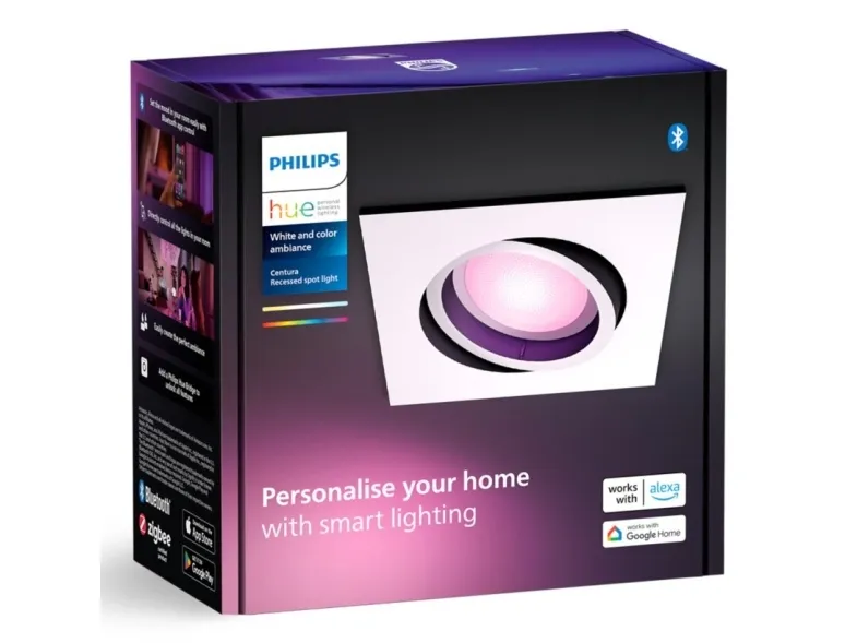 Philips Hue White and Color Ambiance Centura - Upotettu kohdevalo - LED-spottilamppu - GU10 - 4.2 W - luokka E - 16 miljoonaa väriä / lämpimästä viileään valkoiseen valoon - 2000-6500 K - neliö - valkoinen
