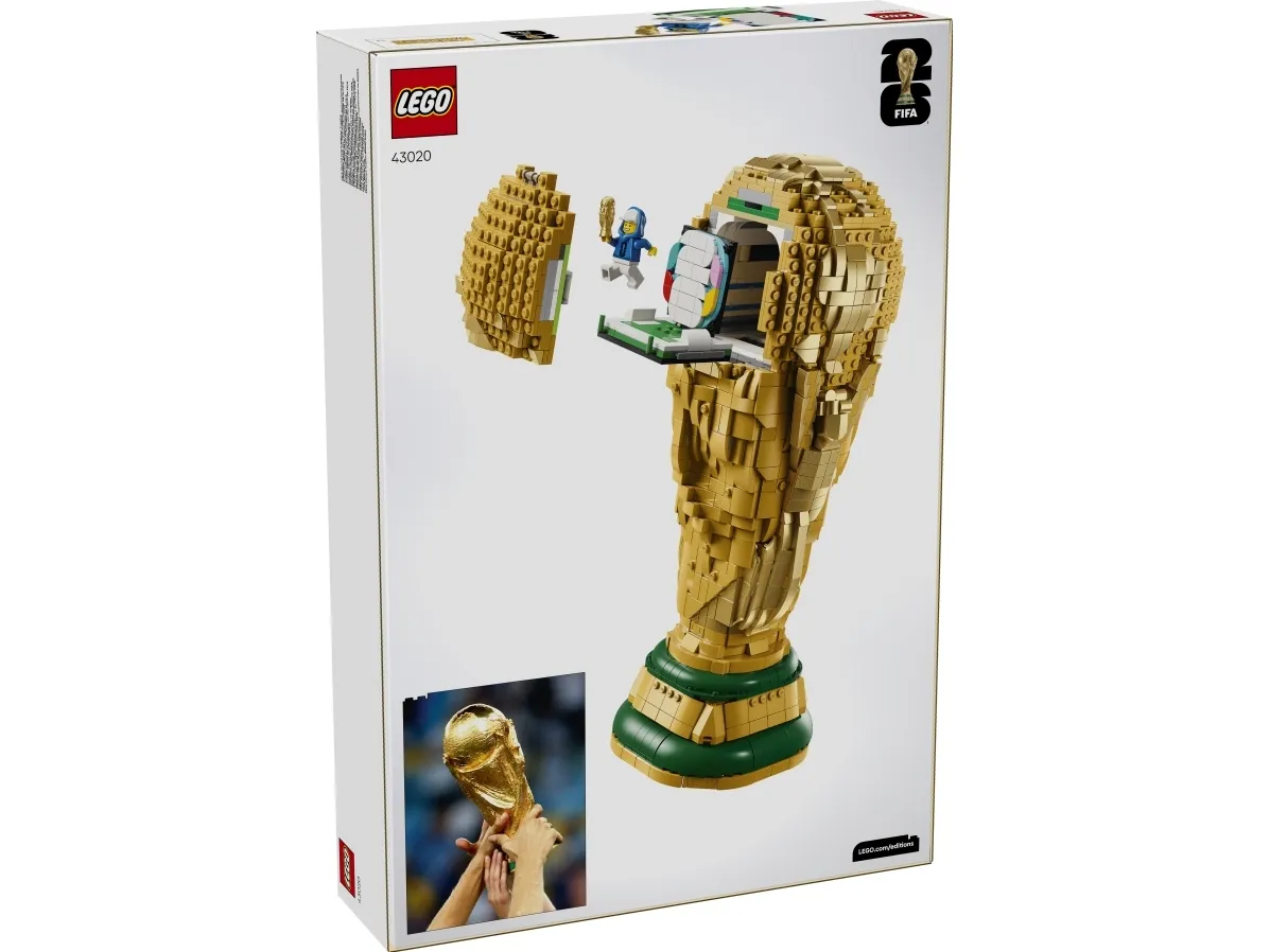 12 vuotta täyttäneille jalkapallofaneille suunniteltu LEGO® Editions FIFA World Cup™ ‑turnauksen virallinen palkinto (43020) ‑rakennussetin parissa rakentelijoista tulee luovuuden mestareita. MM-kisojen pokaalin LEGO palikkaversion rakentaminen ja sen realististen yksityiskohtien tutkiminen on taatusti mieluista puuhaa yli 12-vuotiaille urheilutähdille. Rakennelma esittää kahta ihmishahmoa, jotka pitelevät maapalloa käsissään. Pienoismallin alaosassa on luettelo MM-kisojen voittajista. LEGO pokaalin avattavan yläosan sisältä paljastuu FIFA World Cup 2026™ ‑minihahmo, jolla on kädessään minipokaali, sekä tausta, jossa on vuoden 2026 MM-kisojen logo. Pientä näkymää voi säilyttää pokaalin sisällä, tai sen voi laittaa esille pokaalin viereen. Valmis pokaali on upea jalkapalloaiheinen koriste. Setti on loistava lahja pojille, tytöille ja kaikenikäisille urheilun ystäville vaikkapa syntymäpäivänä. Setti on saatavilla myös digitaalisesti LEGO Builder sovelluksessa, jossa lapset voivat seurata edistymistään ja käännellä rakennelmia. Setissä on 2 842 osaa.