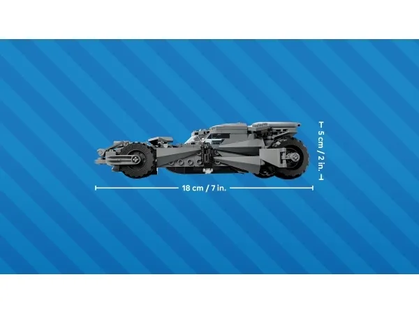 MITAT – 220-osainen LEGO® DC Batman™ Batman v Superman™ ‑elokuvan Batmobile™ on valmiina 5 cm korkea, 18 cm pitkä ja 10 cm leveä