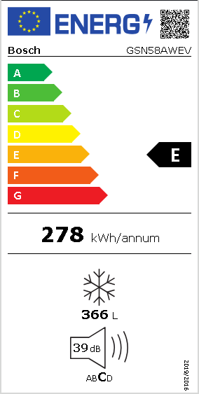 Bosch Serie 6 GSN58AWEV, 366 L, 24 kg/24h, SN-T, No Frost -järjestelmä, E, Valkoinen