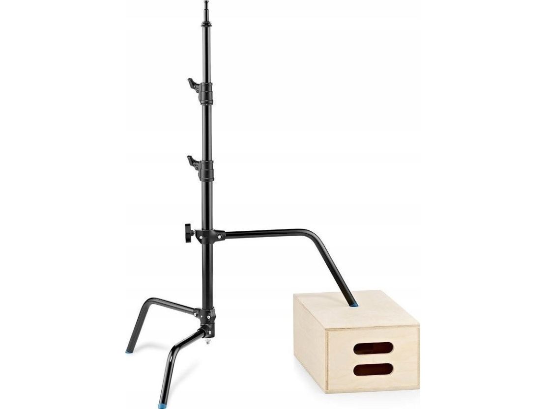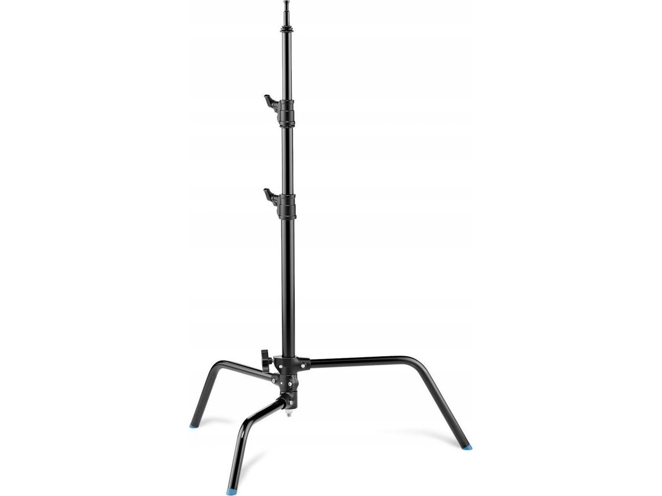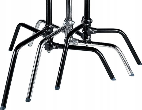 Turtle base chrome plated steel stand in black finish with 3 sections and 2 risers. Legs folds flat for easy storage. This stand has a maximum payload of 8kg and maximum height of 1.75m. It features one sliding leg for easy use on uneven surfaces. The stand is also available in chrome plated steel.