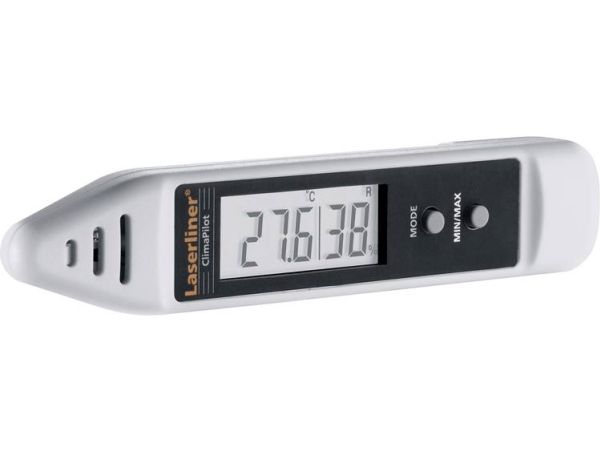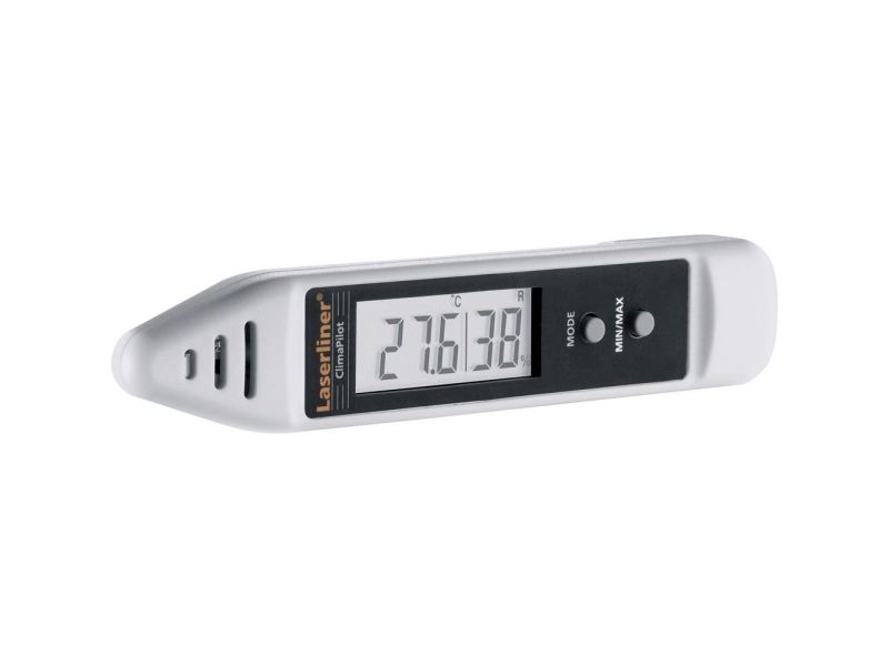 Features: - Short measuring time thanks rapid sensor technology - Min/Max display: The smallest or largest measured value can be displayed, as needed. - Measurement display in °C or °F selectable - Toggle ambient temperature/dew point temperature - Practical device for monitoring room climate - Clip holder