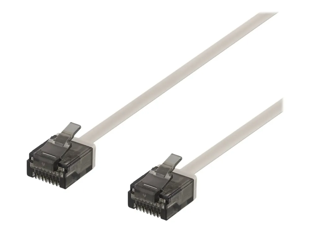 DELTACO U/UTP Cat6a patch cable, flat, 1m, 1mm thick, gray