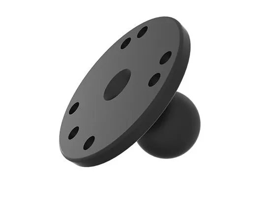 The RAM-B-202U consists of a B Size 1" diameter rubber ball connected to a flat 2.5" diameter plate. This mount has pre-drilled holes, including the universal AMPs hole pattern.