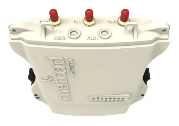 This NetMetal version is equipped with a miniPCI-express slot, a SIM slot for 3G/4G device or additional wireless card, a high power 3 x 3 triple chain 802.11ac wireless and three RP-SMA connectors for external antennas.