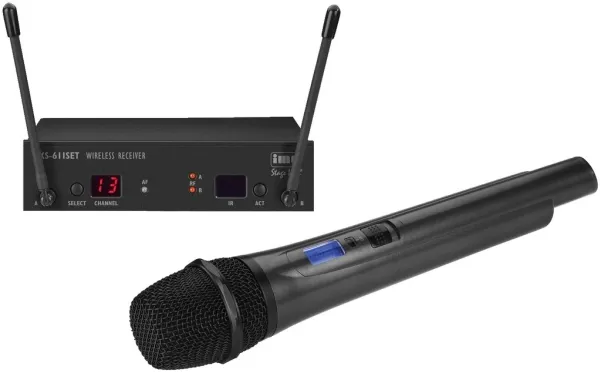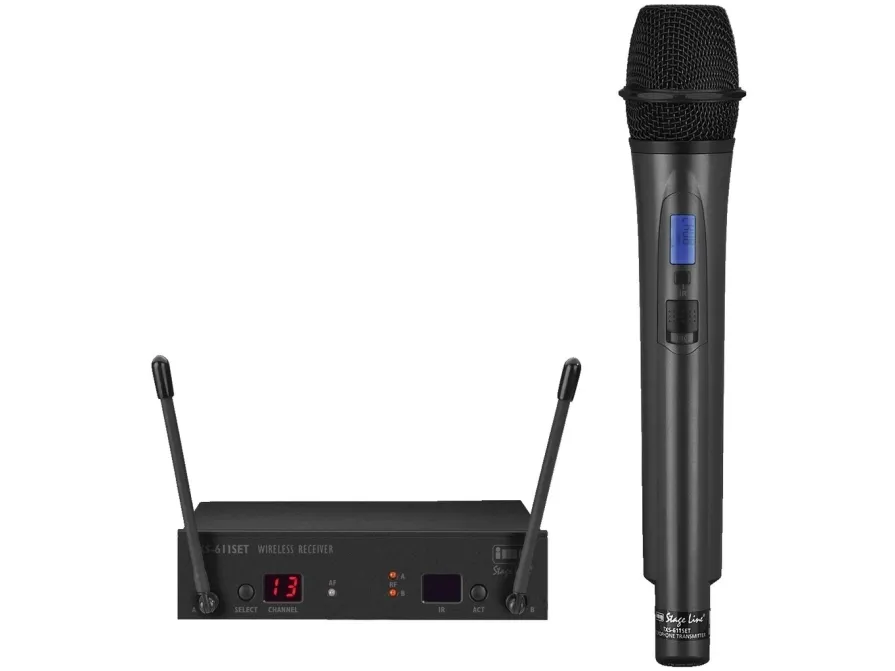 IMG Stage Line TXS-611set audio-overførselssystemMulti-frekvens-mikrofonsystem med UHF-PLL-teknik 1 håndmikrofon-sender (nyrekarakteristik), 1 modtager, 1 stiknetdel True-Diversity-system 80 indstillelige UHF-kanaler (863-865 MHz) ACT-funktion til overførsel af den valgte frekvens til håndmikrofonen via et infrarødt signal Automatisk søgning Regulering af lydstyrke og squelch Transmissionseffekten kan omskiftes på håndmikrofonen (high/low) Display til kanal, antenne A/B, ACT-status og NF-Audio-Level (modtager), kanal og batteritilstand (håndmikrofon) Stabilt metalhus (modtager) Dette system er uden registrering og gebyrer i EU. True-Diversity-system 80 indstillelige UHF-kanaler