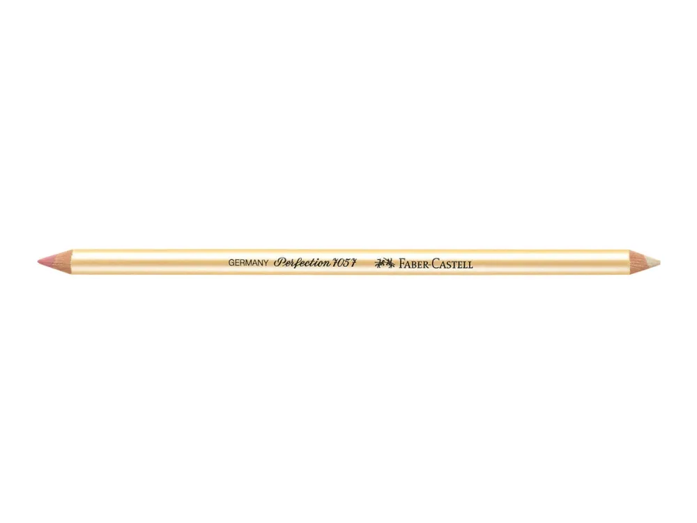 The quality of an eraser and using the correct eraser are crucial for optimum results. Basically, two different materials are used to make erasers: rubber and plastic. All rubber erasers and the majority of the plastic erasers made by Faber-Castell are PVC-free. Faber-Castell PVC-Free erasers do not contain harmful phthalate plasticizer. Phthalates have been reported to cause several undesirable effects when exposed to the human body. The balanced plastic mixture guarantees soft and smear-free erasing.\n\n\n- PERFECTION 7057 eraser pen for precision erasing\n- Red, soft eraser leads for graphite and colour pencils and copies\n- White, hard eraser leads for ink, Indian ink and ballpoint pens\n- Pointed at both ends\n- Latex-free\n\nEcoPencil\n\nWood from sustainably managed forests.\n\nPVC-free\n\nAs a world leader in the production of erasers, Faber-Castell avoids the use of harmful softeners. Most erasers are made from PVC-free plastic.