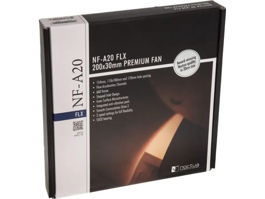 The NF-A20 is a highly optimized, premium quality quiet fan. Featuring an AAO standard frame as well as sophisticated aerodynamic design measures, the NF-A20 brings the renowned quiet cooling performance of Noctua's A-series to the increasingly popular form factor.