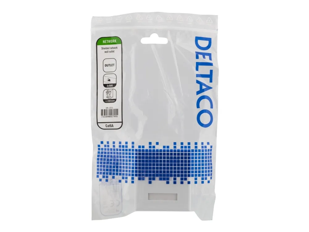 DELTACO suojattu datarasia pinta-asennukseen, FTP, 2 x RJ45, Cat6a, valkoinen.