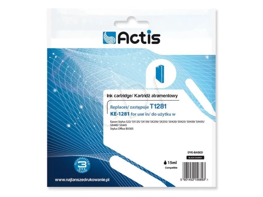 Ink cartridge Actis KE-1281, dye-based, for Epson printer, T1281 replacement, capacity 15 ml, standard version, black.