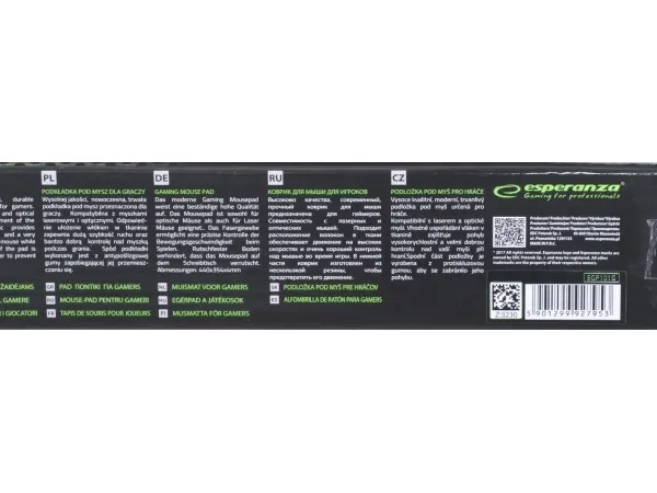 Esperanza EGP101G, Musta, Kuvio, Kangas, Liukumaton pohja, Pelihiirimatto