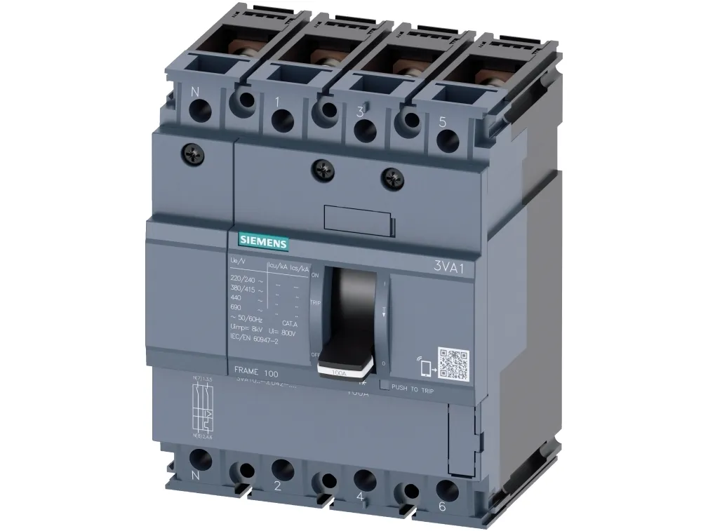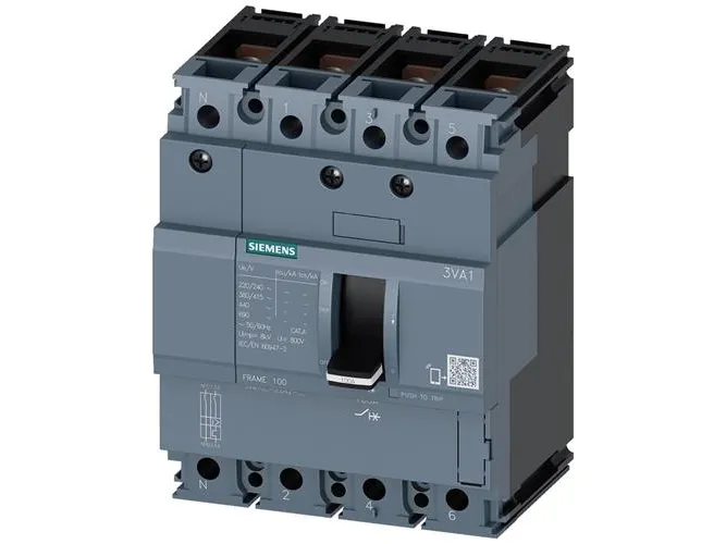 Effektafbryder 3VA1 IEC Frame 100 skiftekapacitet-klasse S Icu=36kA @ 415... Effektafbryder 3VA1 IEC Frame 100 skiftekapacitet-klasse S Icu=36kA @ 415V 4-polet, Anlægsbeskyttelse TM210, FTFM, i=50A overbelastningsbeskyttelse ir= 50A fast indstillet kortslutningsbeskyttelse II=10 x i N-leder ubeskyttet skruer flad tilslutning kompakt effektafbryder 3VA1 til anlægsbeskyttelse. Den kompakte effektafbryder 3VA fra Siemens som vigtig del af sentron beskyttelse komponenter til industrielle anvendelser samt til anvendelser i infrastruktur område leverer effektiv anlæg -, starter- og motorbeskyttelse med sikker frakobling i tilfælde af overbelastning og kortslutning. Den kompakte effektafbryder 3VA sætter nye standarder for fleksibilitet og modulær udvalg af tilbehør. Ensartet tilbehør til flere størrelser over alle serier af kompakt ydeevne kontakten 3VA1 og 3VA2. Denne variant af kompakt ydeevne kontakten 3VA udmærker sig frem for alt ved: 1. Kompakt design. 2. Tilgængelig som variant til anlægsbeskyt