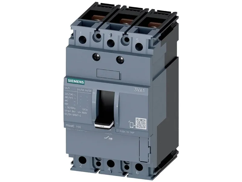 Effektafbryder 3VA1 IEC Frame 160 skiftekapacitet-klasse N Icu= 25kA @ 415... Effektafbryder 3VA1 IEC Frame 160 skiftekapacitet-klasse N Icu= 25kA @ 415V, 3-polet, Anlægsbeskyttelse TM210, FTFM, i=16A overbelastningsbeskyttelse ir=16A fast indstillet kortslutningsbeskyttelse II=20 x i skruer flad tilslutning kompakt effektafbryder 3VA1 til anlægsbeskyttelse. Den kompakte effektafbryder 3VA fra Siemens som vigtig del af sentron beskyttelse komponenter til industrielle anvendelser samt til anvendelser i infrastruktur område leverer effektiv anlæg -, starter- og motorbeskyttelse med sikker frakobling i tilfælde af overbelastning og kortslutning. Den kompakte effektafbryder 3VA sætter nye standarder for fleksibilitet og modulær udvalg af tilbehør. Ensartet tilbehør til flere størrelser over alle serier af kompakt ydeevne kontakten 3VA1 og 3VA2. Denne variant af kompakt ydeevne kontakten 3VA udmærker sig frem for alt ved: 1. Kompakt design. 2. Tilgængelig som variant til anlægsbeskyttelse 3. Afhængi