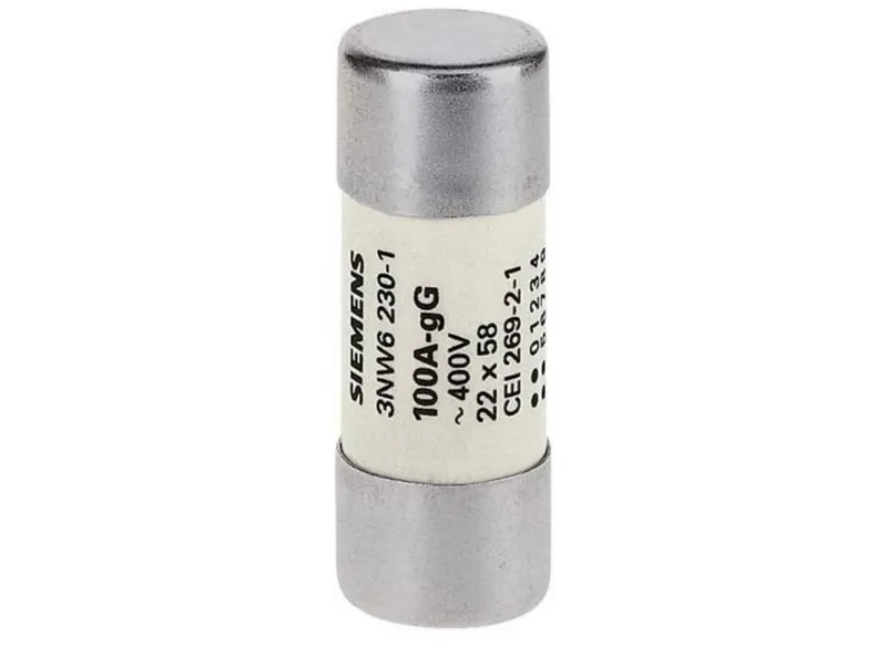 SENTRON, cylinder sikringsindsats, 22x58 mm, 32 A, gG, Un AC: 500 VSENTRON, Cylindersikringsindsats, 22x58 mm, 32 A, GG, UN AC: 690 V SENTRON. Cylinder-system til selektiv anlægsbeskyttelse. Siemens cylindersikringsindsatser og -sikringsholdere er egnede til anvendelse i industrielle anlæg. De er testet og godkendt i Europa som sikringsseparatorer, men ikke beregnet til kobling under belastning. Siemens tilbyder en omfattende portefølje til kobling under belastning, f.eks. 3KF. Siemens cylinderbeskyttelsessystemerne udmærker sig især ved: 1. Overensstemmelse med IEC 60269-1, -2 og -3. 2. Overholdelse af standard UL 512. 3. Hurtig udskiftning af sikring takket være plads til reservesikringer i bakken. 4. Hurtig genkendelse af ududløst sikring ved hjælp af blinkende LED i tilfælde af udløsning.