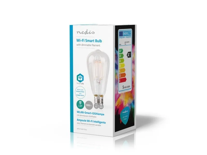 Combine modern day technology with classic looks with this smart filament bulb that connects directly to your wireless/Wi-Fi router to offer remote control as part of your home automation system. Easy to set upYou don’t need to be a technical genius or an electrician to control and automate your lighting remotely. All you actually need is your Wi-Fi router, our intuitive app and these Nedis® wireless smart bulbs. No extra kit and no connecting hubs: this is home automation made simple. Control the bulb’s brightnessConnect them up and you can now control the brightness by using your smartphone or tablet. And if you’re getting super smart you can even control them with your voice via Amazon Alexa or Google Home. Set up schedules and pair with other smart productsSet up time schedules for the bulb to be switched on or create ambient scenes in an instant by pairing this bulb to other products from the Nedis® SmartLife range. About Nedis® SmartLifeDiscover a wide and ever-expanding range of products – such as bulbs, switches, sockets, sensors, and cameras – that can all be controlled through an easy-to-use and intuitive app. With voice control features supported by Amazon Alexa and Google Home, and no need for anything more than your existing Wi-Fi network, this is the connected, smart home made simple.Whether you're looking for a single smart bulb or socket, or you want to automate your entire house, discover how accessible smart technology is today.