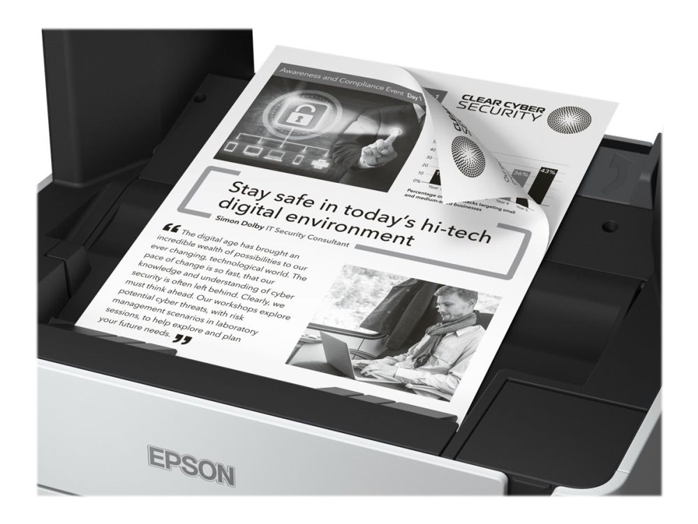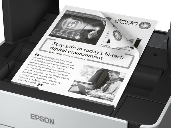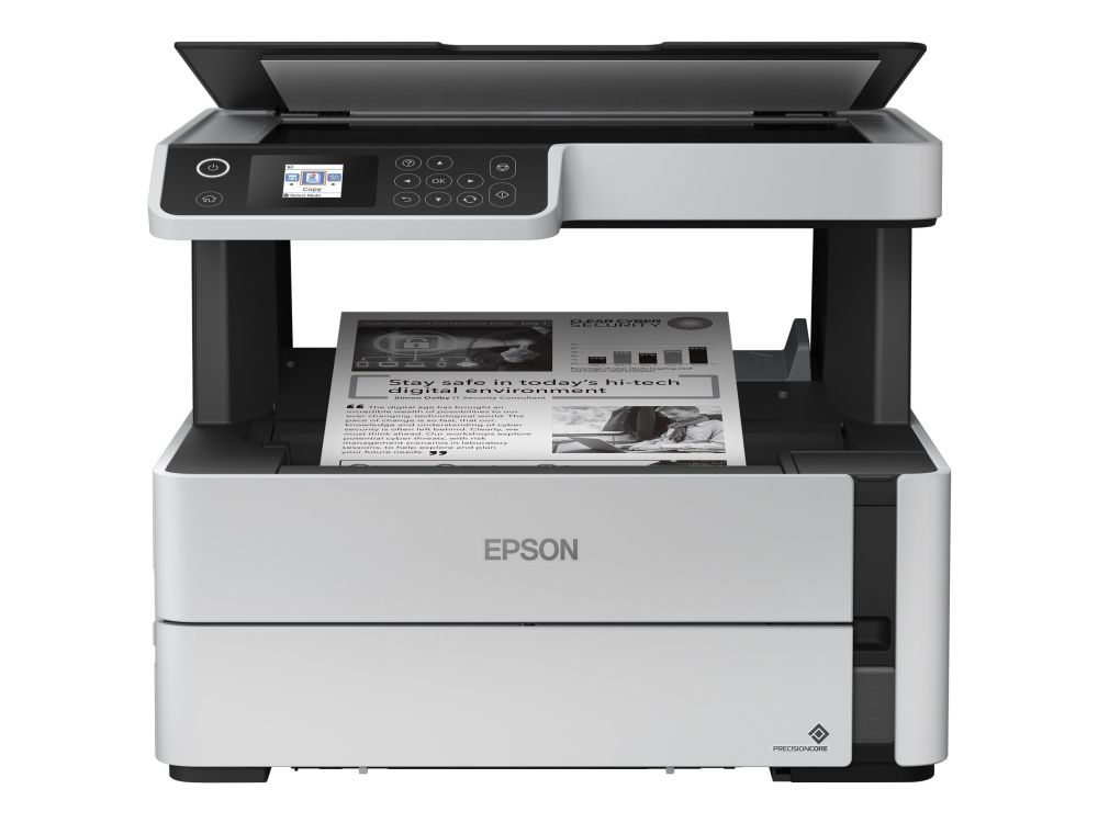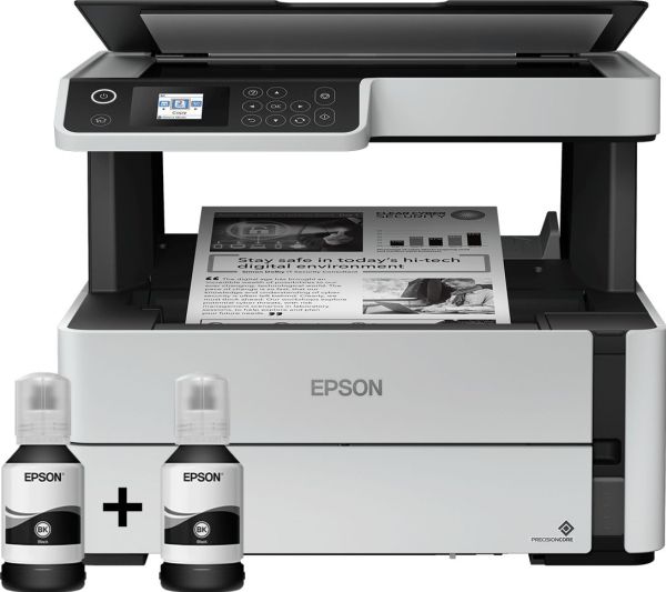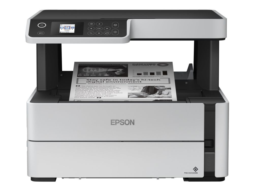 EcoTank M2170Mobile printing is easy with this durable, fast and energy-efficient EcoTank. With print, scan and copy, it provides a low-cost printing solution, that can help reduce your printing costs. A cost-efficient solution, print up to 11,000 pages with the included black ink1. Select features directly and quickly using the 3.7cm colour LCD screen.Reduce your printing costsYou can save up to 50% in three years compared to monochrome laser printers with EcoTank2. It features a large refillable ink tank that you fill with the included ink bottles instead of toner. From the start you have enough ink to print thousands of pages, slashing costs and saving time.Low cost replacementsWhile refills are likely to be few and far between, you''ll be able to save over 90% on the cost per page with replacement ink bottles3.ReliableGiving peace of mind, every EcoTank mono printer comes with a one-year/100,000-page warranty.Save timeDon''t waste time changing supplies - with an ink tank system you can essentially fill it up and forget about it. Printing is fast with no warm-up time and speeds of 20ppm4.Save energyCut energy usage and reduce overheads with an EcoTank mono printer. It can save up to 95%5 in power consumption compared to mono laser printers.Efficient business featuresExperience the PrecisionCore printhead that''s renowned for its speed, quality, reliability and efficiency. Replace paper less often with the 250-sheet tray and save paper with automatic double-sided printing.Connectivity solutionsScan-to-Cloud and print from anywhere in the office with Wi-Fi connectivity and Epson''s free mobile printing apps. Epson EcoTank M2170. Print technology: Inkjet, Printing: Mono printing, Maximum resolution: 1200 x 2400 DPI. Copying: Mono copying, Maximum copy resolution: 600 x 600 DPI. Scanning: Colour scanning, Optical scanning resolution: 1200 x 2400 DPI. Maximum ISO A-series paper size: A4. Wi-Fi. Direct printing. Product colour: Black, White