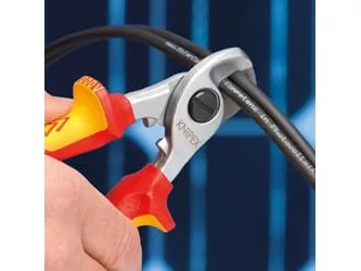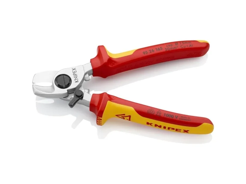 With opening springKnipex 95 26 165. Product type: Hand cable cutter, Handle colour: Red, Yellow, Material: Steel. Length: 165 mm, Width: 63 mm, Weight: 275 g