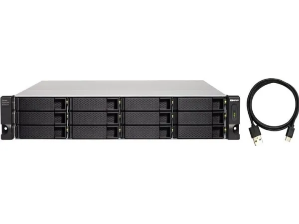The rackmount TL-R1200C-RP JBOD storage enclosure allows you to back up and expand your QNAP NAS, computers (supports Windows and Mac), and servers. The TL-R1200C-RP features twelve 3.5-inch SATA 6Gb/s drive bays with USB 3.2 Gen 2 (10 Gbps) Type-C connectivity to provide a fast and smooth expansion solution.