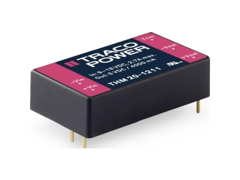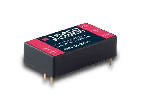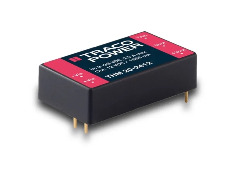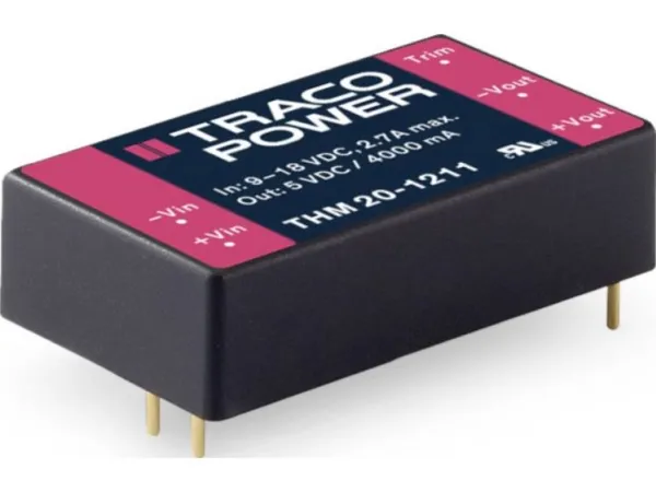 The THM 20 series is a range of medical 20 Watt DC/DC converters in 1.6” x 1.0” plastic package and with wide 2:1 input voltage range. They provide a reinforced isolation system for 5000 VAC isolation and a very low leakage current of less than 2.5 µA. The units are approved to IEC/EN/ES 60601-1 3rd edition for 2 x MOPP and come along with an ISO 14971 risk management file. Design and production conform to the quality management system ISO 13485. With a high efficiency of up to 89% and highest grade components the converters can reliably operate in an ambient temperature range of –40°C up to +80°C. They constitute a reliable solution not only for medical equipment but also for demanding ranges of application such as transportation, control & measurement or IGBT drivers.