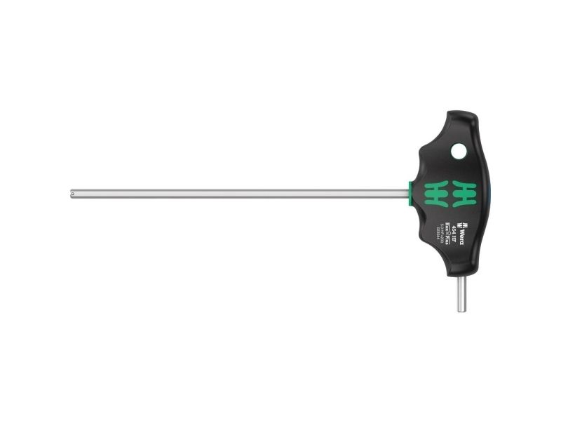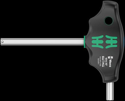 T-handle screwdriver: The ideal handle shape to allow high torque transmission in difficult tightening and loosening situations. The ergonomic shape of the handle fills the palm of the hand well, the fingers lie safely in the soft rounded handle recesses. The whole hand makes contact with the handle and friction losses between the hand and the handle are avoided. With holding function (HF) to securely hold the hexagon socket screw on the tool. Special surface treatment of the blades for high corrosion protection and an optimum fit in the screw head.