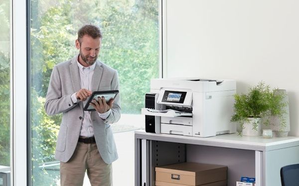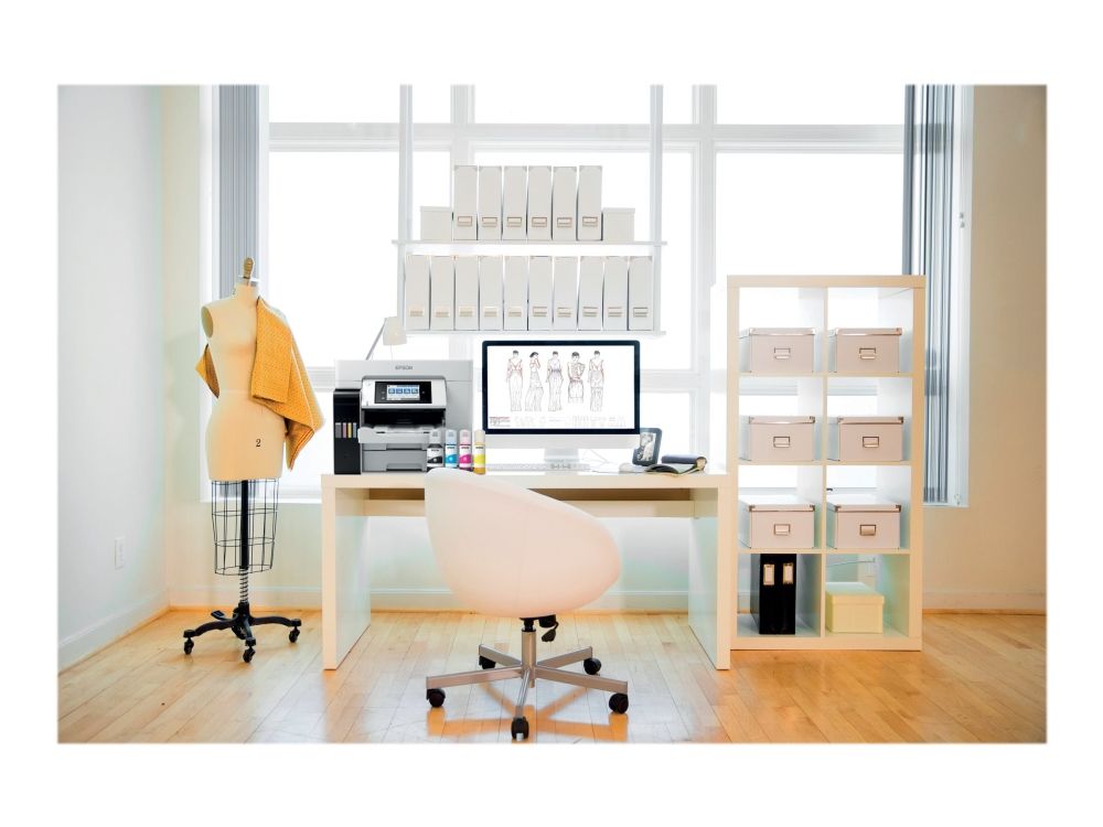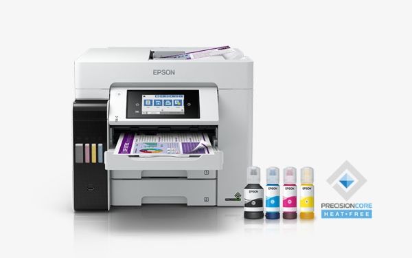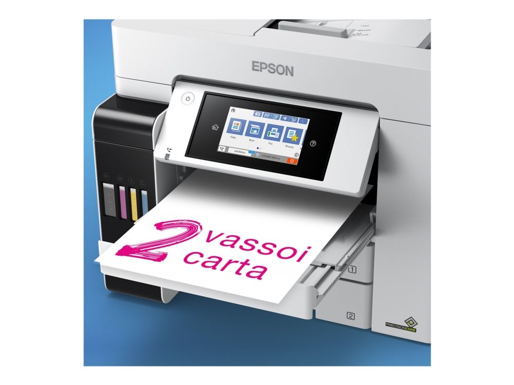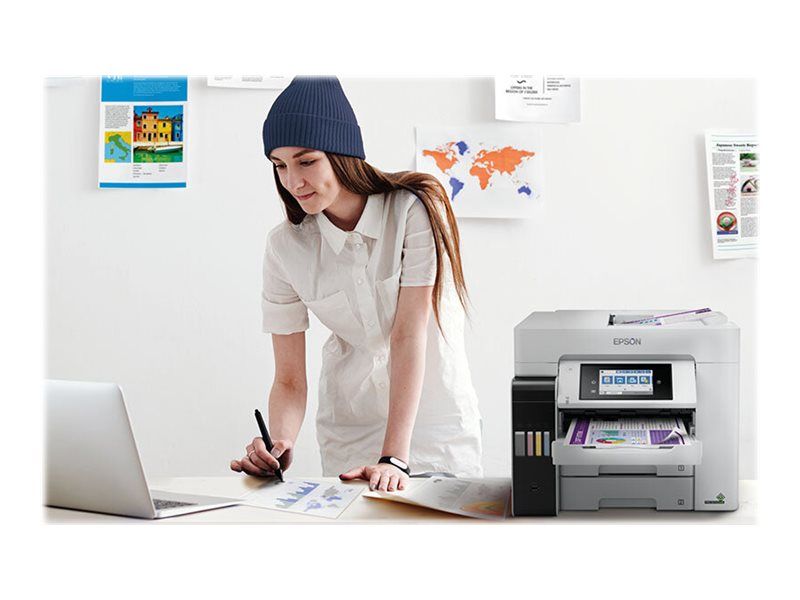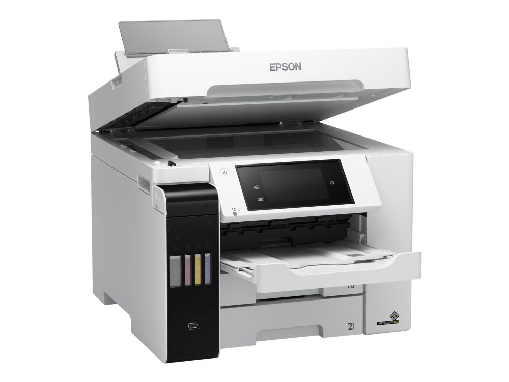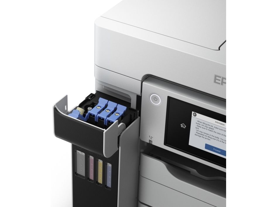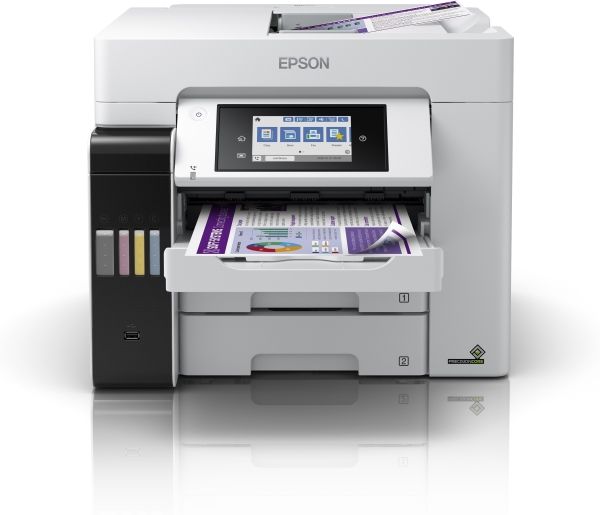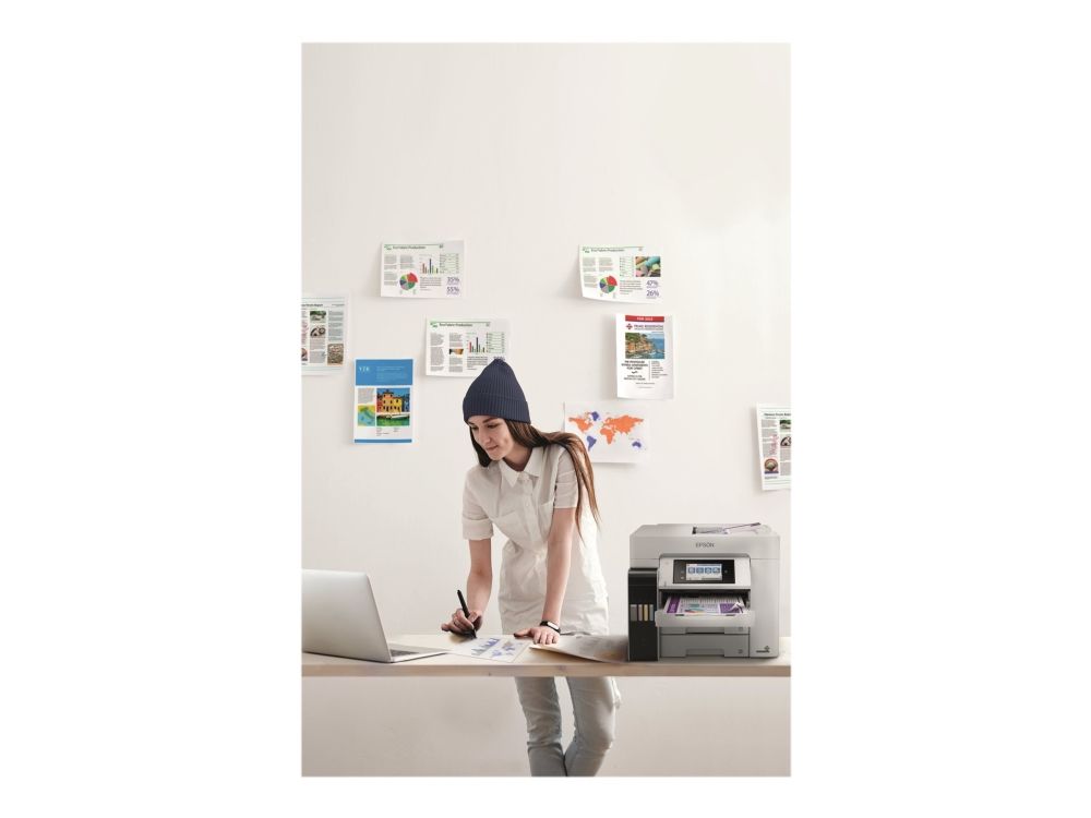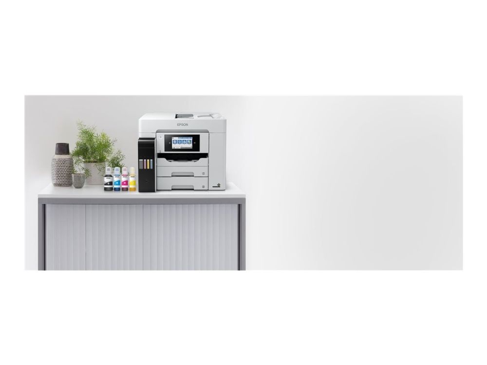 Tulosta, skannaa, kopioi ja faksaa helppokäyttöisellä A4-koon EcoTank-tulostimella, jossa on langaton tulostus ja erittäin edulliset sivukohtaiset tulostuskustannukset. Nopean tulostuksen ja skannauksen lisäksi työskentelyä helpottaa kaksi 250 arkin paperilokeroa, 50 arkin takasyöttö sekä 50 arkin automaattinen arkinsyöttölaite. Lämmöttömän PrecisionCore-tekniikan ansiosta tulostimessa on alhainen energiankulutus.