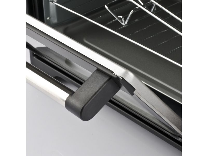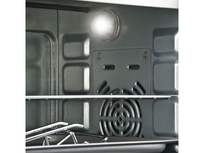 The electric oven FE30 features a generous capacity of 30 litres and, thanks to its special shaped back, it’s able to comfortably accommodate a 31 cm diameter plate. Equipped with heat convection that provides the ability to cook evenly and quickly every kind of food, this unit can prepare two courses simultaneously in a very short time and with low energy consumption. Equipped with a 60-minute timer, internal light to always keep an eye on your plates and adjustable thermostat from 100 to 230° C, this unit features 3 cooking modes: standard, grill to make crispy and roasting the top of the dishes and combined.