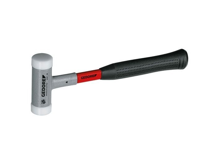Nearly unbreakable fibreglass handle with handy plastic grip and secured head. Splinter-proof, shatter-proof and wear-resistant polyamide heads, 75 Shore D, tested to -20° C. Powder-coated with silver hammer-effect enamel.