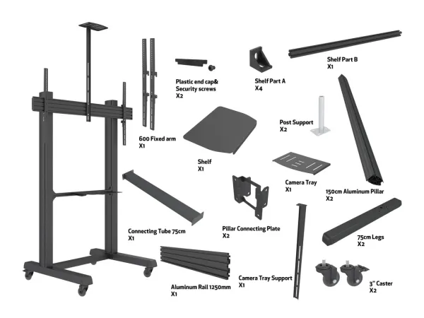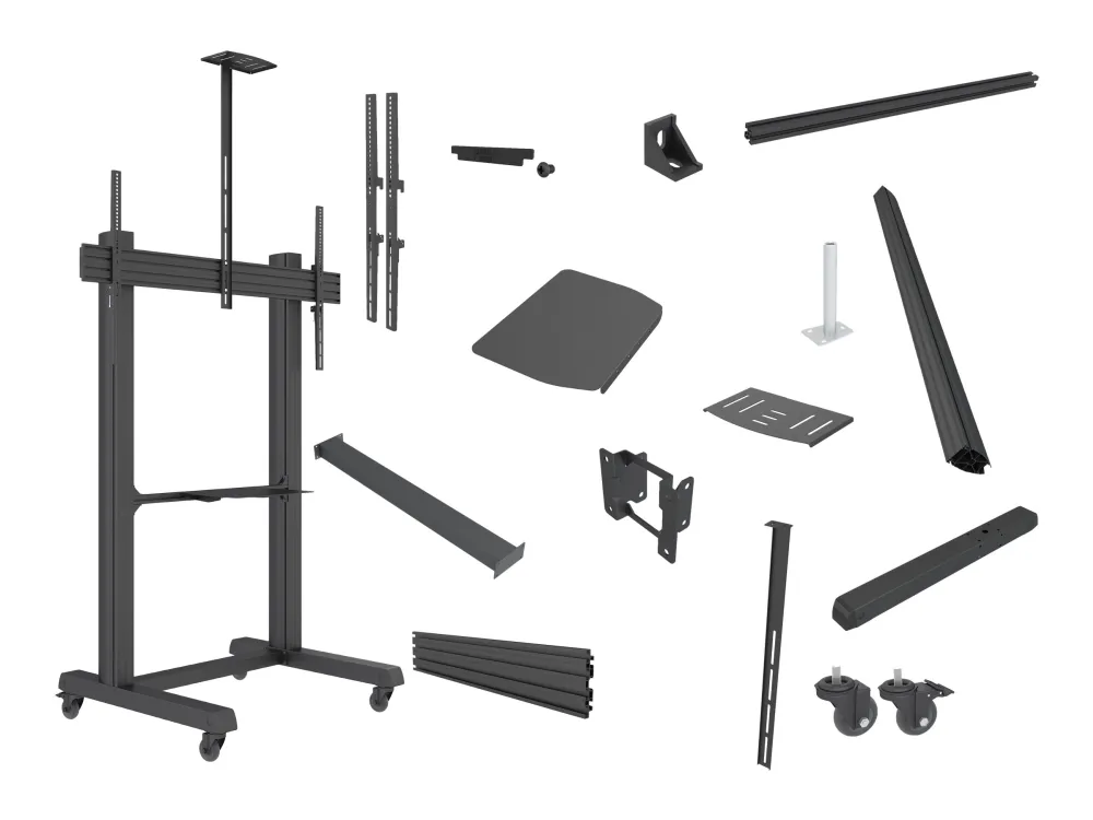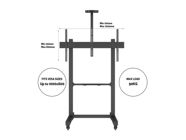 Introducing the M Floorstand Pro MBF1U 150 a flat panel TV cart that was designed to include all of the features you may need, making it perfect for any application. Mobility, appealing design, display height adjustment, pre-assembled base and safety certifications ensure quick assembly while providing a ridged, but attractive and structured that fits into any decor.
