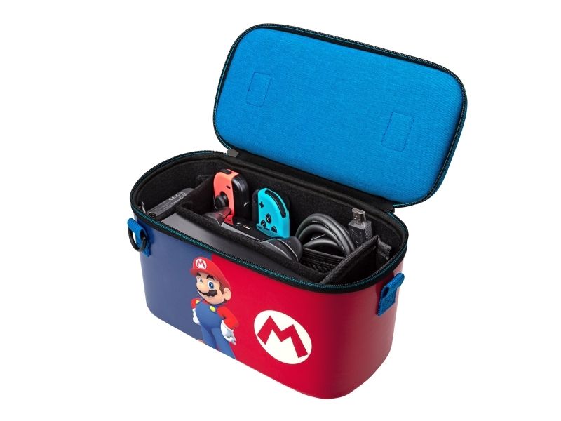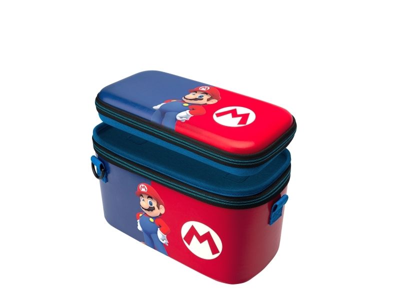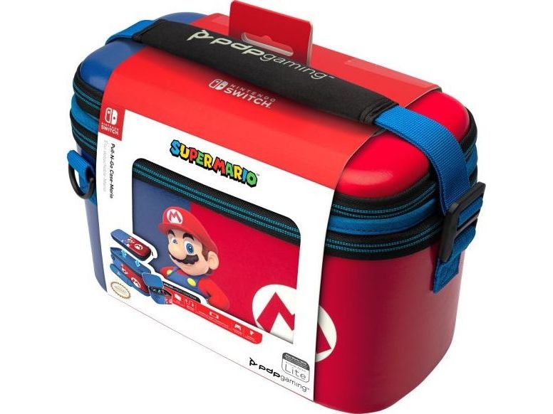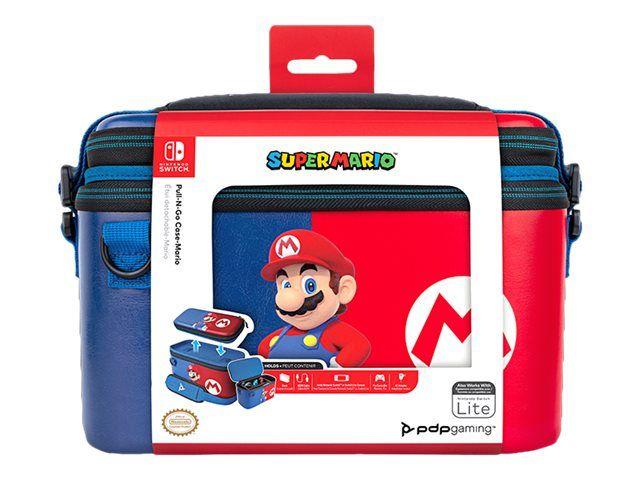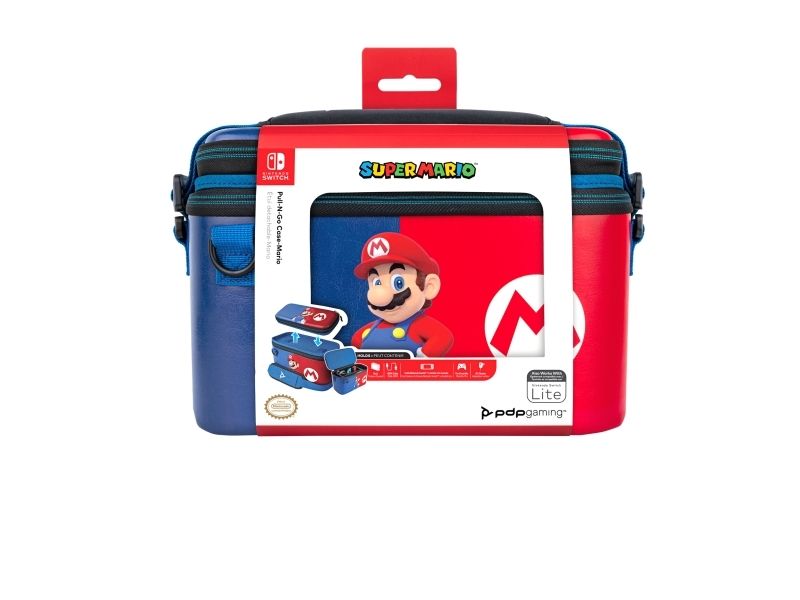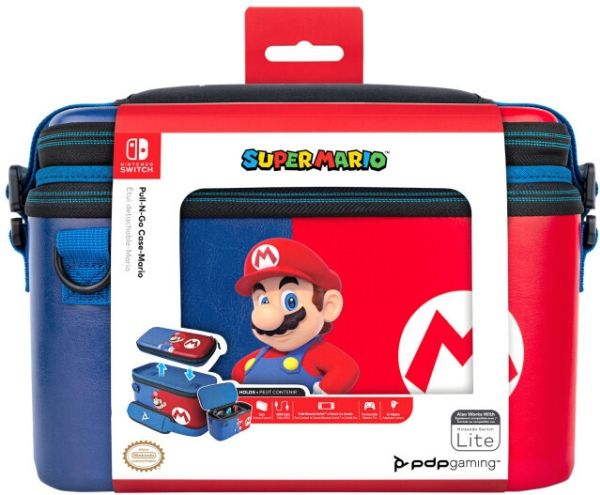 The Power Pose Mario Pull-N-Go case for Nintendo Switch, Switch Lite, or Switch OLED model is 2-in-1 for more fun! Pack your entire system inside or pull off the attached slim travel case for on-the-go gaming sessions.