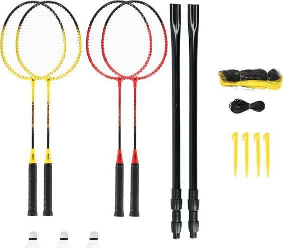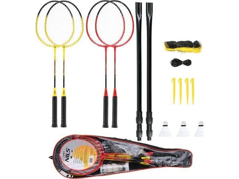 Nils Extreme NRZ264 aluminium badmintonset: 4 rack + 3 fjäderbollar + nät 600x60 cm + väska