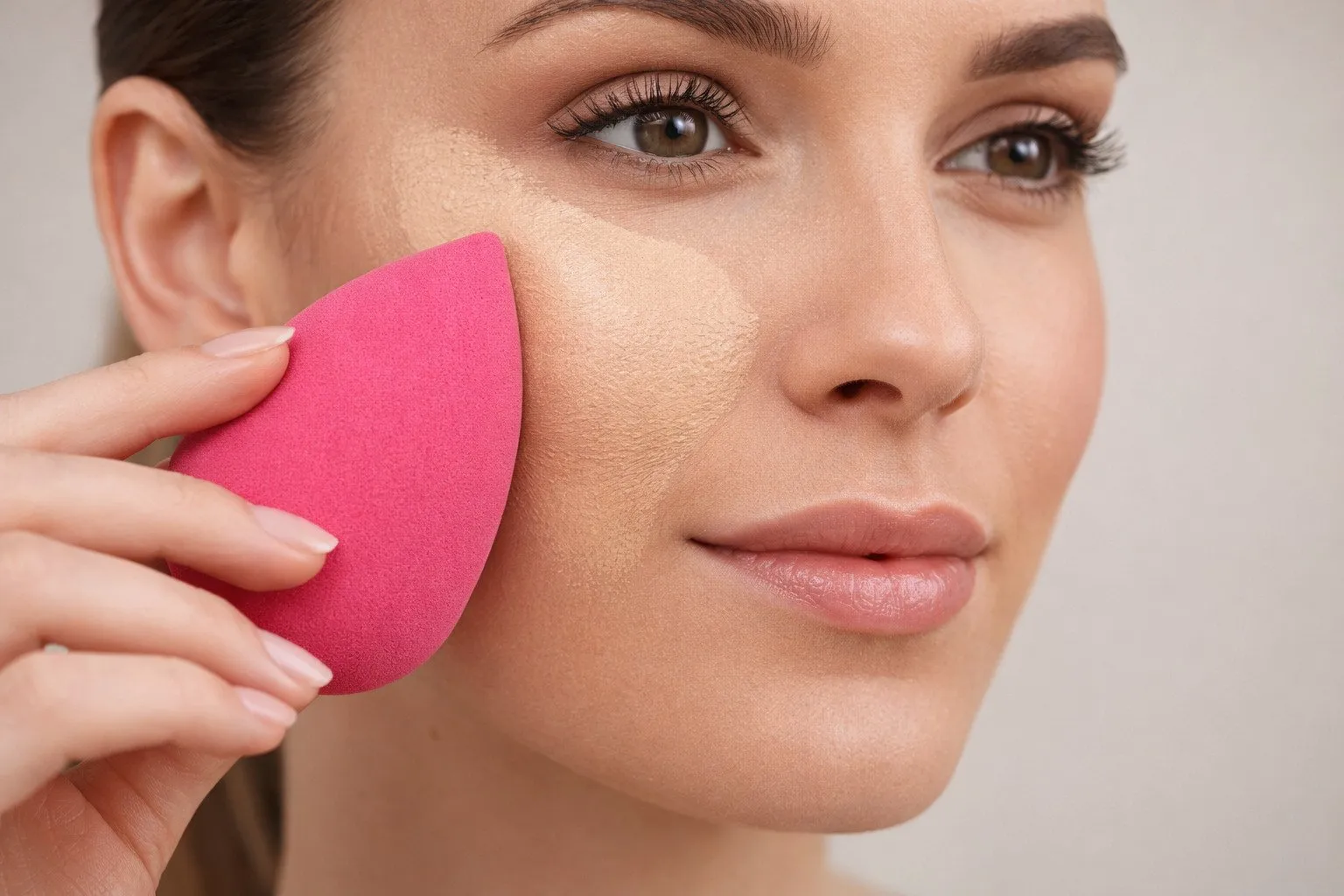 Beauty Blenderiä voidaan käyttää sekä kuivana että kosteana, mutta se antaa luonnollisimman tuloksen, kun se on hieman kostutettu – tasaisen lopputuloksen ilman raitoja tai teräviä reunoja.