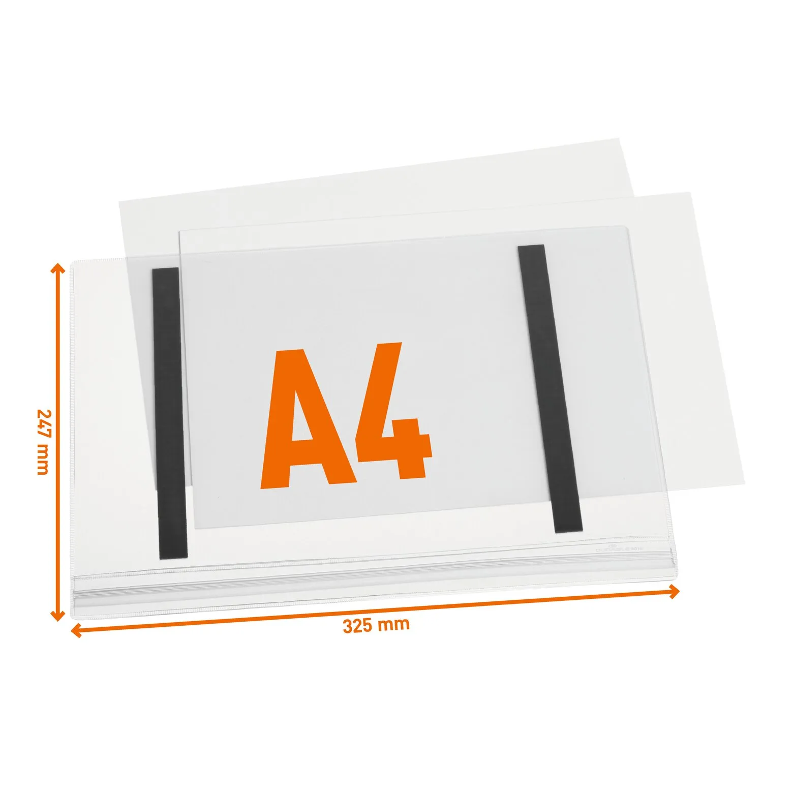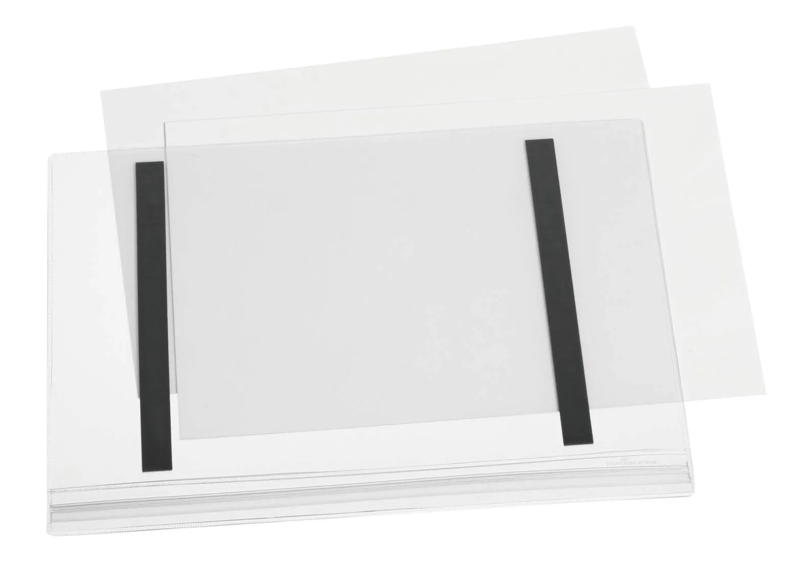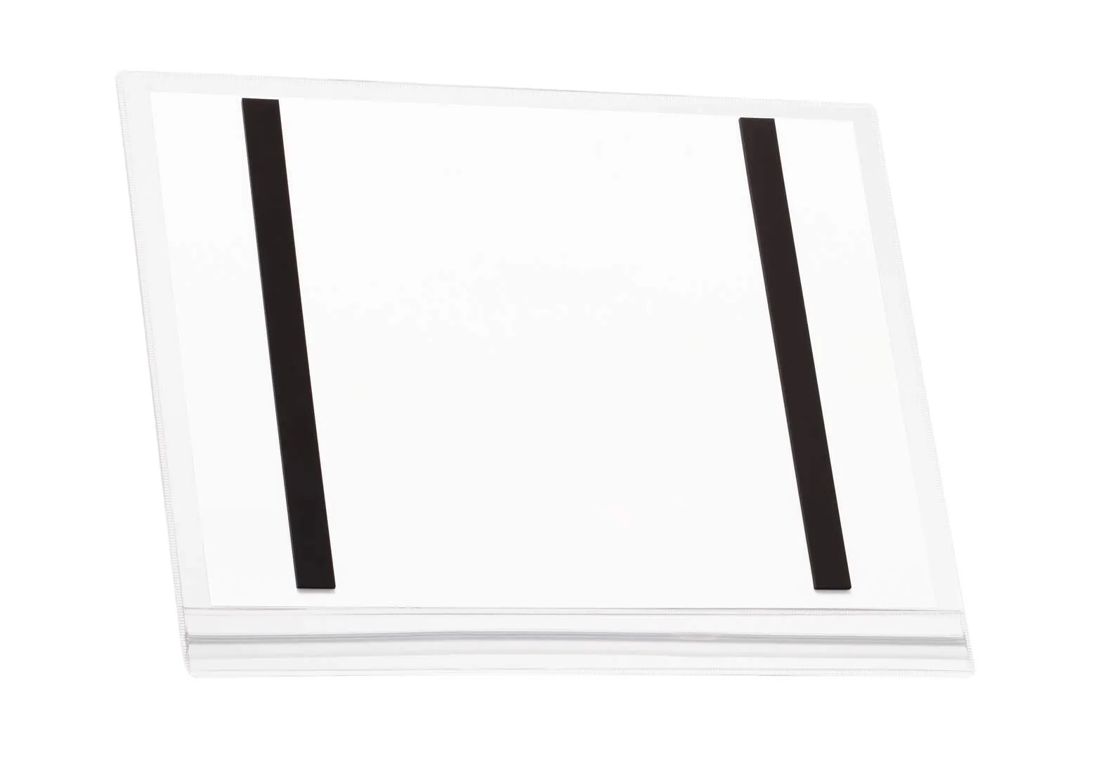 • Water-resistant pocket is ideal for displaying information outdoors such as garden centres, saunas, swimming pools, gates and notice boards, where notices come into contact with splashing water. • The waterproof pressure closure protects the contents of the pocket especially in the rain, high humidity, wetness and dirt. • Magnetic: 2 magnetic strips with high adhesive force on the back of the display pocket (adhesive force 0.95N/cm² per magnetic strip). • IPX5 standard tested (protection against water jets from all directions). • Transparent UV-stabilized and weather-resistant, scratch-resistant plastic with an anti-reflective effect. • Can be used in both portrait and landscape format. • contents quickly and easily • Capacity 2 sheets 160 g/gsm, included in the pack