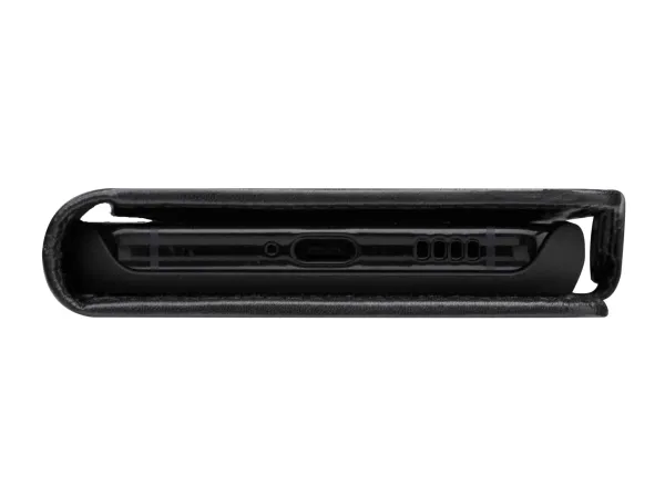 This Lynge leather wallet protects your smartphone, while providing you with numerous viewing angles. It has a loose cradle that is secured in the wallet part of the cover with magnets, this means you can leave the leather and credit cards in your pocket while you use the phone. This feature really adds to the flexible use of the cover and the loose cradle is nicely clad with leather on the back. The case folds in a notebook style and fastens with a magnetic leather tab.