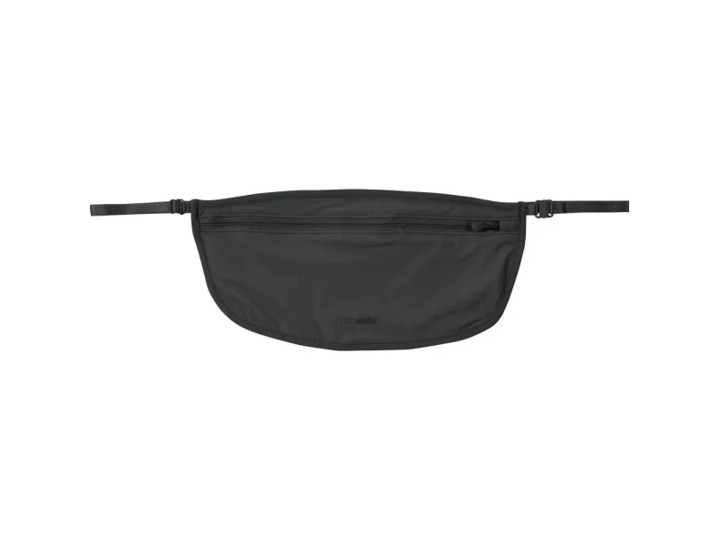 - Secure lightweight clasp for attachment straps - Sized for passports, credit cards and cash - Snap button flap closure - Soft touch adjustable elastic waist strap with clasp - Zippered closure