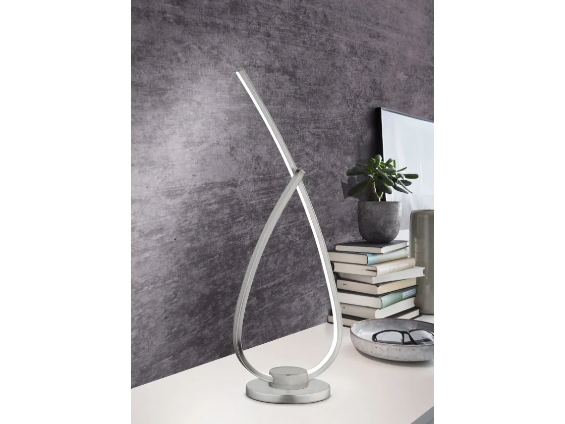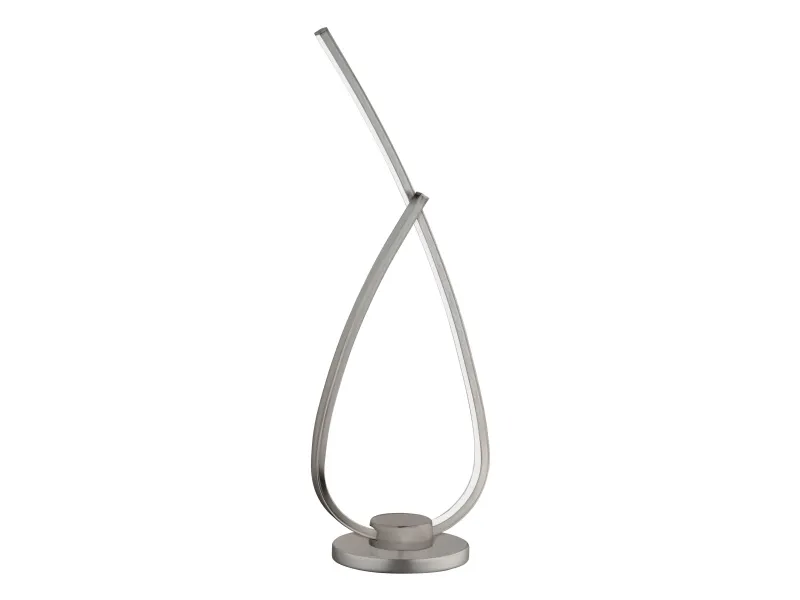 The LED table lamp PALOZZA 1 is made of nickel-matt metal with an upwardly curved LED profile. The integrated LEDs under the white plastic cover give off a pleasant, warm white light and cannot be seen. It is also easy to switch on and off using a switch on the cable. The table lamp with its simple design fits into modern living styles and offers stylish lighting in the room.