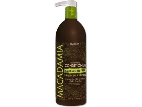 KATIVA Macadamia Conditioner, Naisten, 1000 ml, Hiustenhoitoaine ammattikäyttöön, Kuivat hiukset, Kaikki värit, Kosteuttava, LG Shine, Pehmentävä