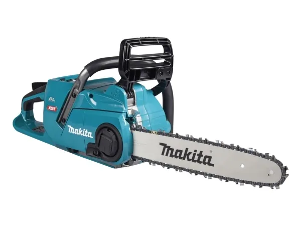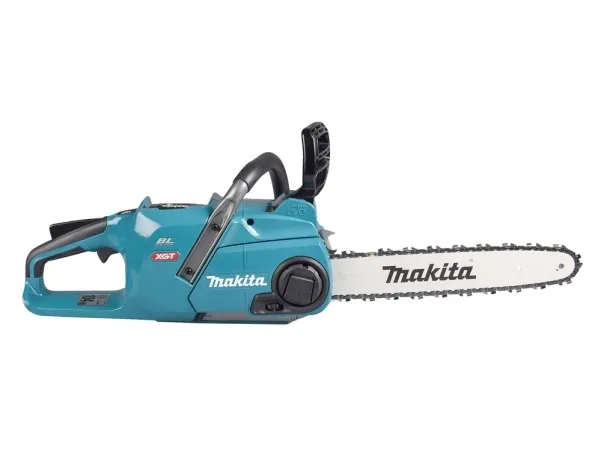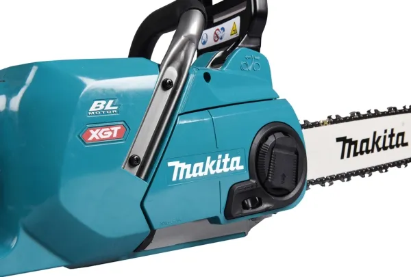 XGT 40Vmax battery powered chainsaw. A very high powered chainsaw made for professionals. equivalent to 42 ml class engine chain saw. Tool-less chain adjustment makes the saw even more convenient. This chainsaw is perfect for construction sites, gardens or summer cottages.