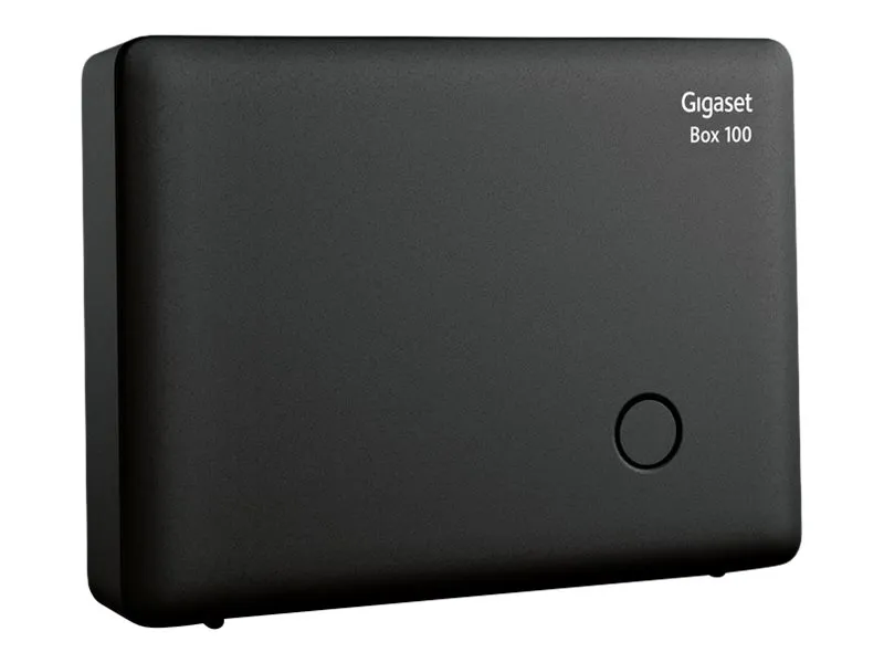 The Gigaset Box 100 functions as a reliable cordless phone base station that enhances communication at home or in the office. With support for up to 6 handsets, it accommodates large families or teams, allowing freedom of movement throughout the space without losing signal. The ECO DECT{$TAB$}extbackslash GAP standard ensures energy-efficient operation, providing a cleaner and greener solution for daily communication needs. Designed with a compact profile, measuring 12 cm in width, 4 cm in depth, and 9.2 cm in height, this base station fits seamlessly into any setting. Its notable maximum operating distance of 50 m indoors and 300 m outdoors empowers users with flexibility, ensuring that users stay connected in larger areas. With an additional function for phonebook transfer, managing contacts is made simple and convenient.