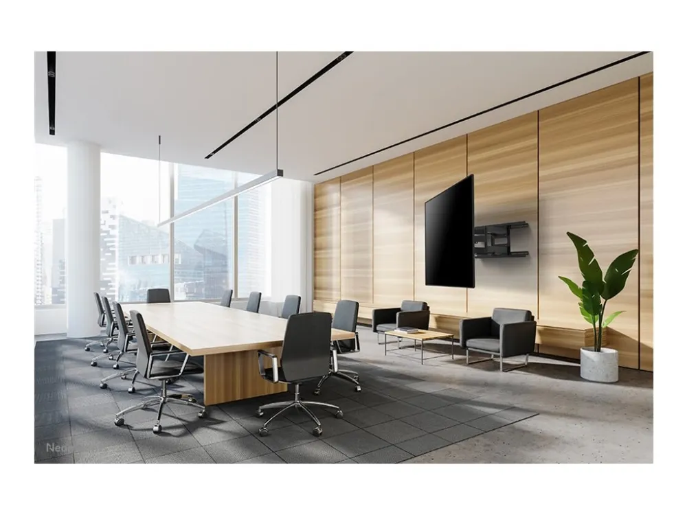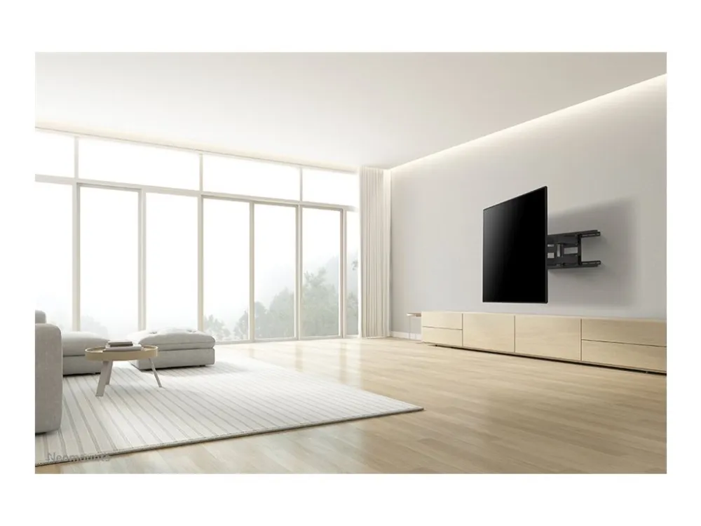 The Neomounts WL40S-950BL18 is a full-motion heavy-duty wall mount for flat screens up to 110" with a maximum weight capacity of 125kg. The versatile tilt (20°) and swivel (90°) technology allows you to create the optimum viewing angle. Level adjustment is available for the perfect installation. The WL40S-950BL18 has a depth of 8.2-70cm and is suitable for screens that meet VESA hole pattern 300x200 to 800x600mm. The mount features a nifty easy-release system that allows you to attach the TV in a wink of an eye. To ensure easy installation, the wall mount is packed pre-assembled and a separate spirit level tool, as well as a fixing template, is included with the wall mount. The mount is equipped with high-quality steel cable management to secure any loose cables at the back of the screen.