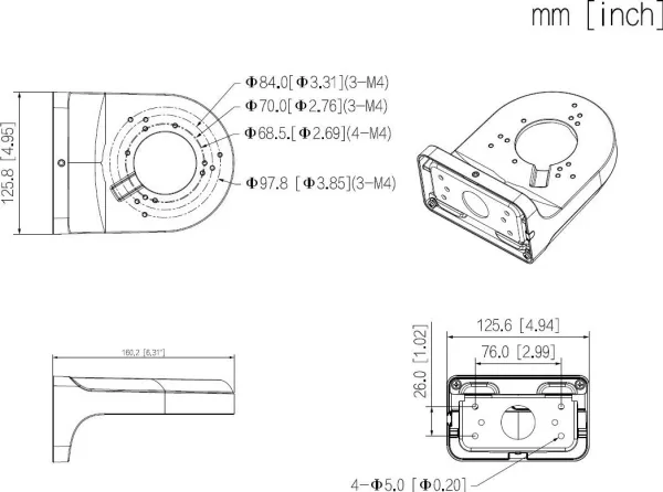 Aluminum alloy material, cost-effective. Dedicated for particular cameras, beautiful and elegant designed.Dahua Technology PFB205W-E. Type: Mount, Placement supported: Universal, Product colour: White. Maximum weight capacity: 2 kg. Width: 81 mm, Depth: 128 mm, Height: 170 mm. Package width: 272 mm, Package depth: 427 mm, Package height: 363 mm