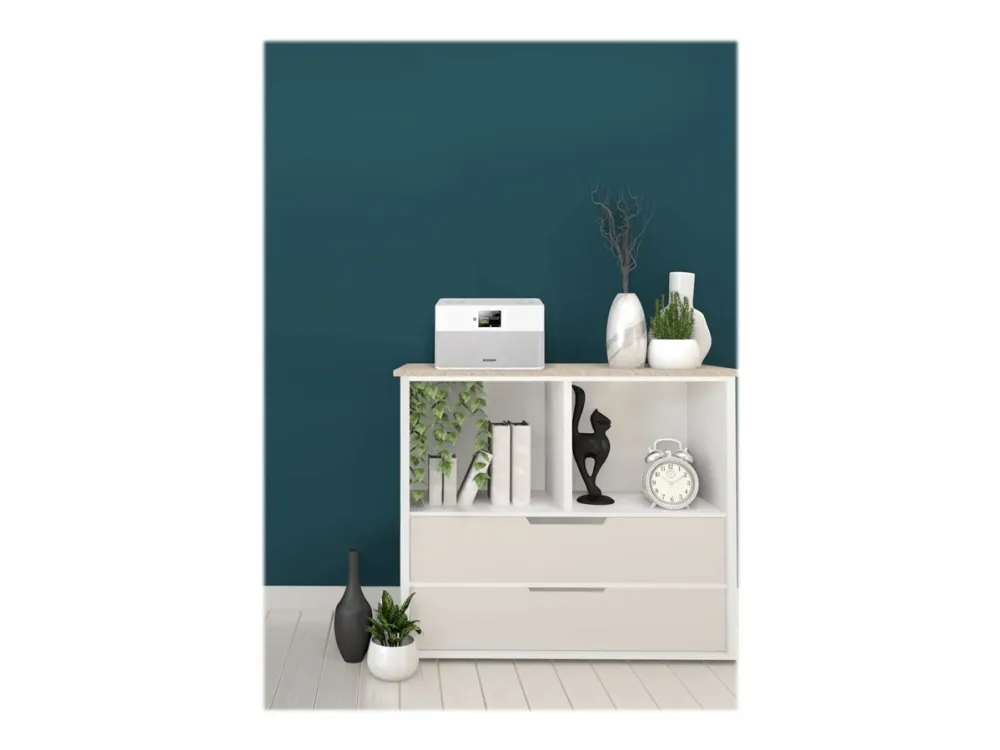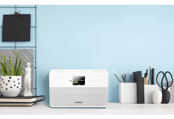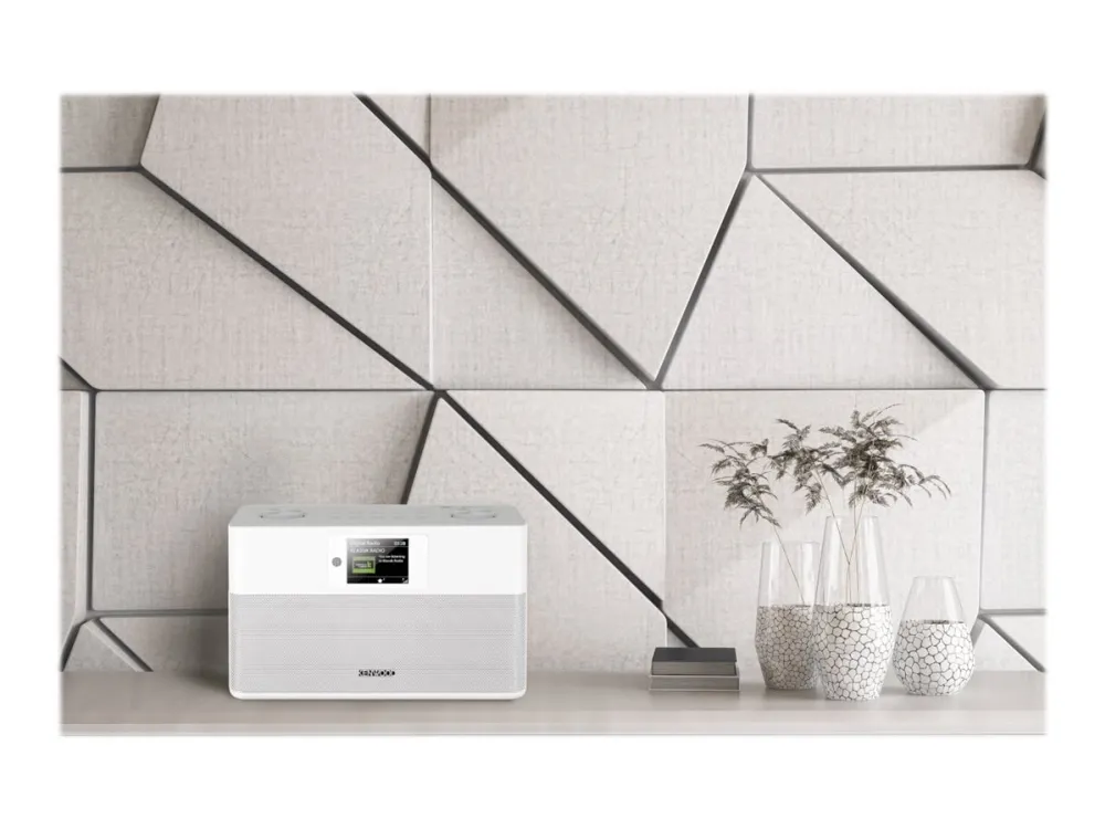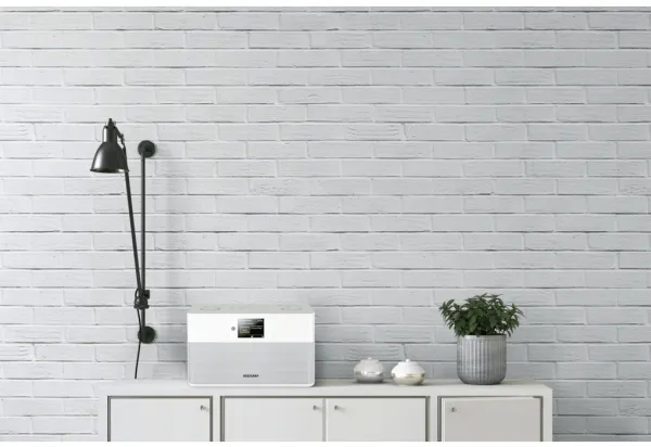 This compact stereo radio with DAB+, FM-RDS, Bluetooth audio streaming, and a TFT color display fits anywhere and is a real eye-catcher for kitchens and other rooms.