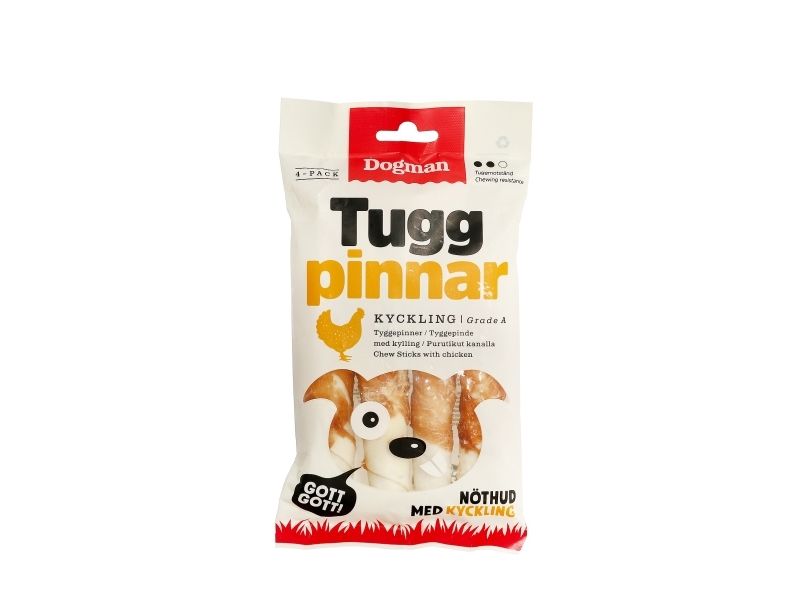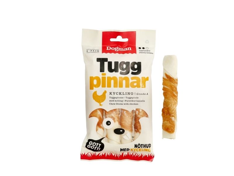 Maukkaat raakavuoriset purutikut, joissa on herkkää kanaa ulkopinnalla. Täydellinen vaativille koirille! Tyydyttää pureskelun tarpeen ja edistää tervettä hammashygieniaa. Valvo aina koiraasi pureskellessasi purukaloja. A-luokan kanaa