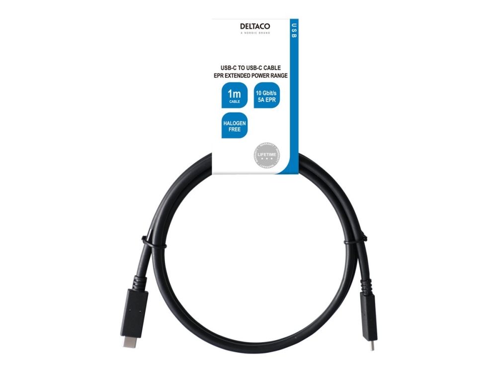 DELTACO - USB-C -kaapeli - 24 pin USB-C to 24 pin USB-C - 1 m