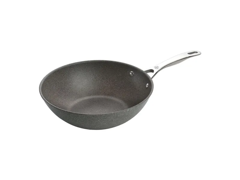 The BALLARINI Salina 30 cm wok lets you bring the best of two worlds together: Asian healthy cooking and Italian expertise in pan design and function. The cookware is solid aluminium and features a ceramic outer layer in elegant granite design. The wok’s inner qualities also impress with its innovative 6-ply GRANITIUM Ti X non-stick coating and extra layer of titanium. Scratches don’t stand a chance. The wok can be used on all kinds of hob, including induction. There it utilises BALLARINI’s specially developed radiant induction technology for excellent heat distribution. Speaking of heat ... Because you cook with woks at high temperatures, you should always use an oil with a high smoke point. Constantly stirring the wok pushes ingredients back and forth between the hot base and cooler walls. This preserves nutrients and vitamins better. As ingredients are gradually cooked, you push them towards the rim. Making your work even easier is the fact that the wok is dishwasher-safe. And providing a treat for the eyes is the stainless steel handle based on the design by Studio Matteo Thun & Antonio Rodriguez. Well? Got an appetite for travel? Then head to the kitchen.BALLARINI 75002-815-0. Shape: Round, Type: Wok/Stir-Fry pan, Product colour: Anthracite. Diameter: 30 cm, Bottom diameter: 12 cm, Width: 313 mm. Quantity per pack: 1 pc(s)